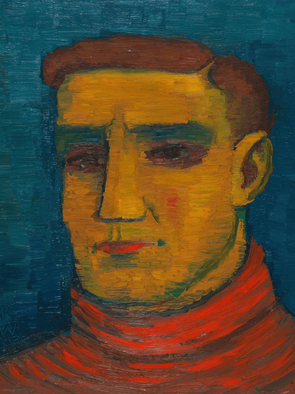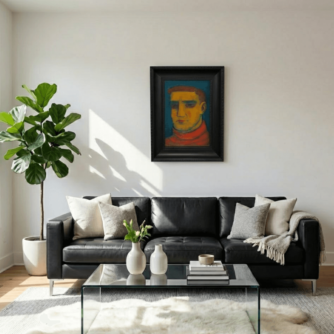 กรอบรูปลายหลุยส์ สีดำด้าน งานภาพพิมพ์ สไตล์ สีน้ำมันบนผ้าใบ ภาพ Männliches Porträt (around 1932) Karl Wiener (Austrian, 1901-1949)