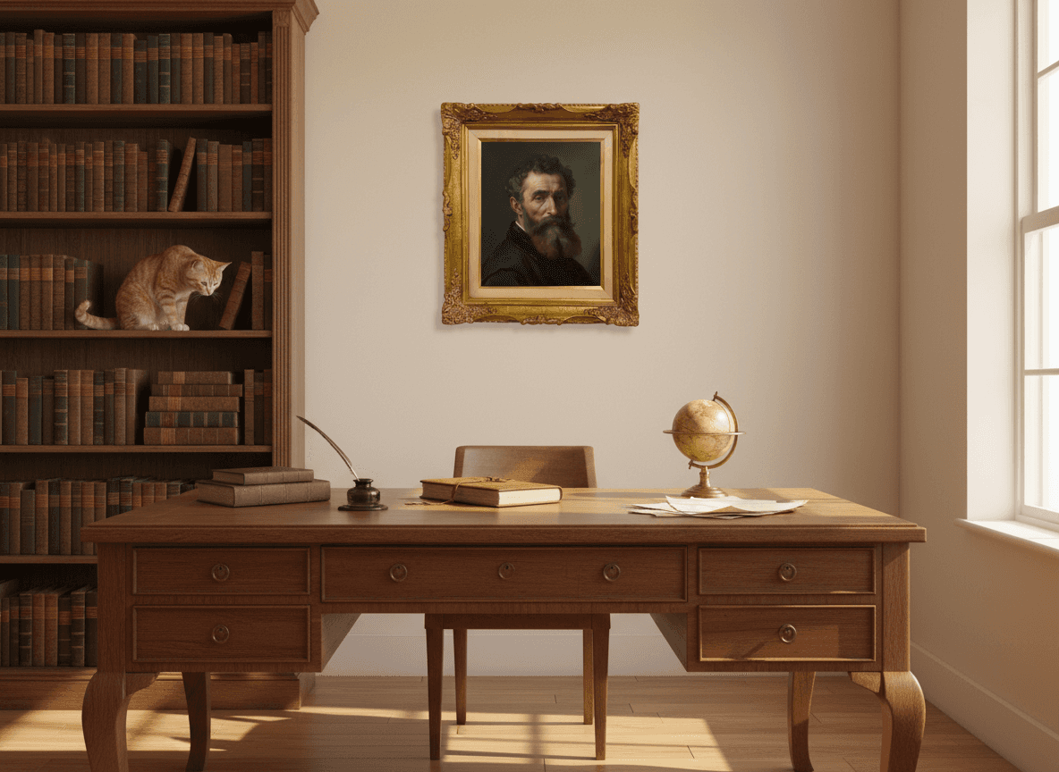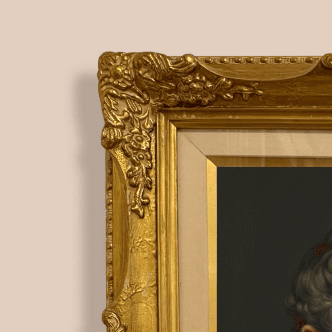กรอบรูปลายหลุยส์งานเก่าจากญี่ปุ่น ขอบลายใหญ่สีทอง งานภาพพิมพ์ สไตล์สีฝุ่น บน Canvas รูป Micheal angelo