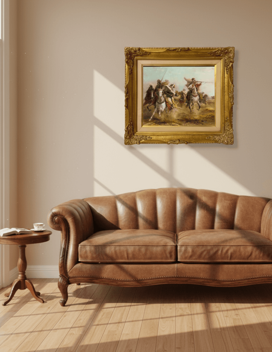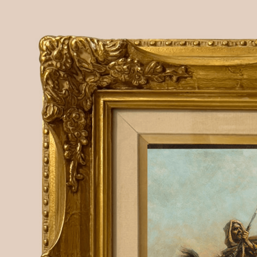 กรอบรูปลายหลุยส์งานเก่าจากญี่ปุ่น ขอบลายใหญ่สีทอง งานภาพพิมพ์ สไตล์สีฝุ่น บนผ้าใบ ภาพ Adolf Schreyer