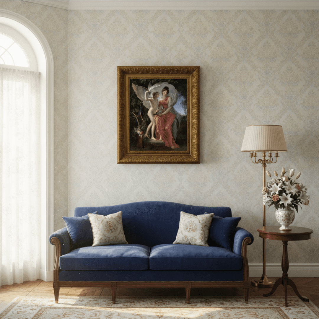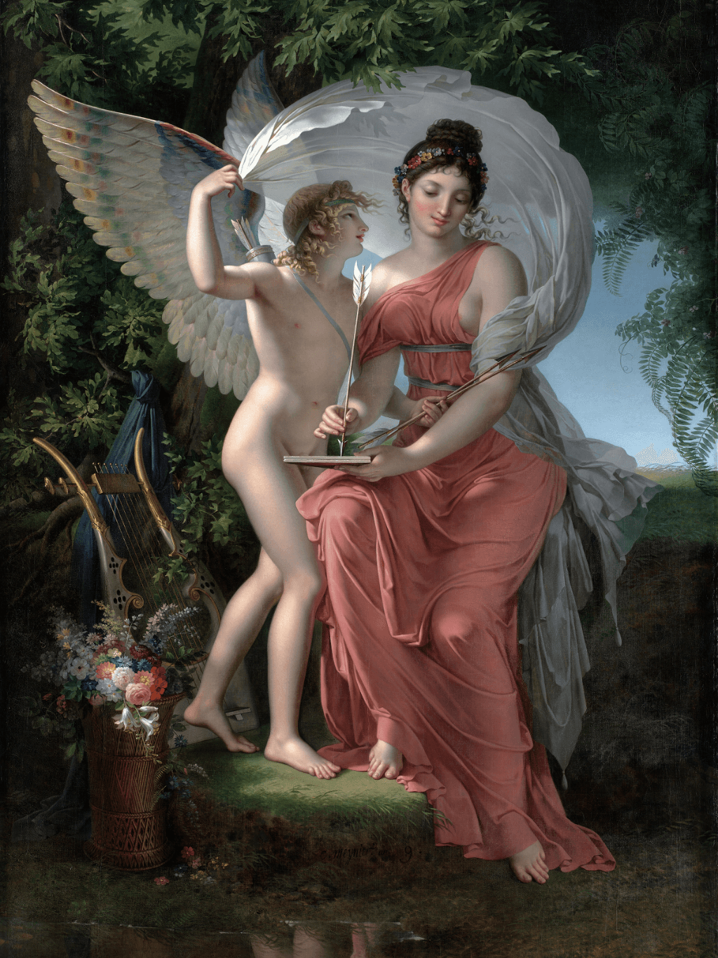 กรอบรูปลายหลุยส์ งานภาพพิมพ์ สไตล์ สีน้ำมันบนผ้าใบ ภาพ Erato, Muse of Lyrical Poetry (1800) Charles Meynier (French, 1768-1832)
