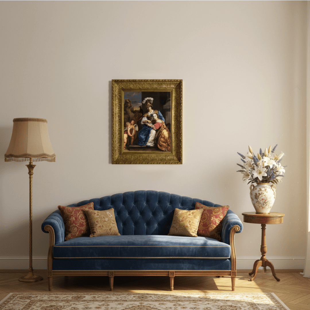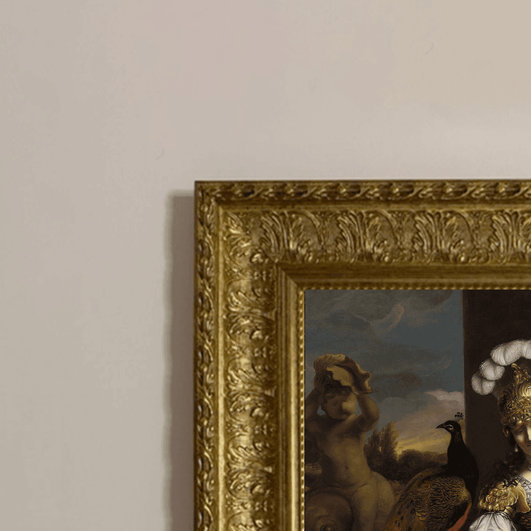 กรอบรูปลายหลุยส์เก่า งานภาพพิมพ์ สไตล์ สีน้ำมันบนผ้าใบ ภาพ Margarita Trip As Minerva, Instructing Her Sister Anna Maria Trip (1663)