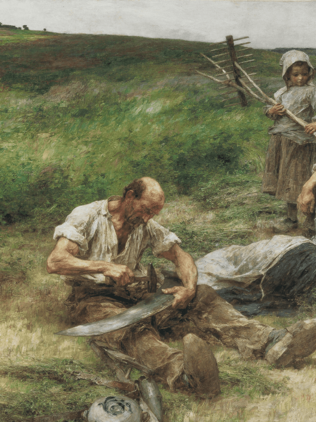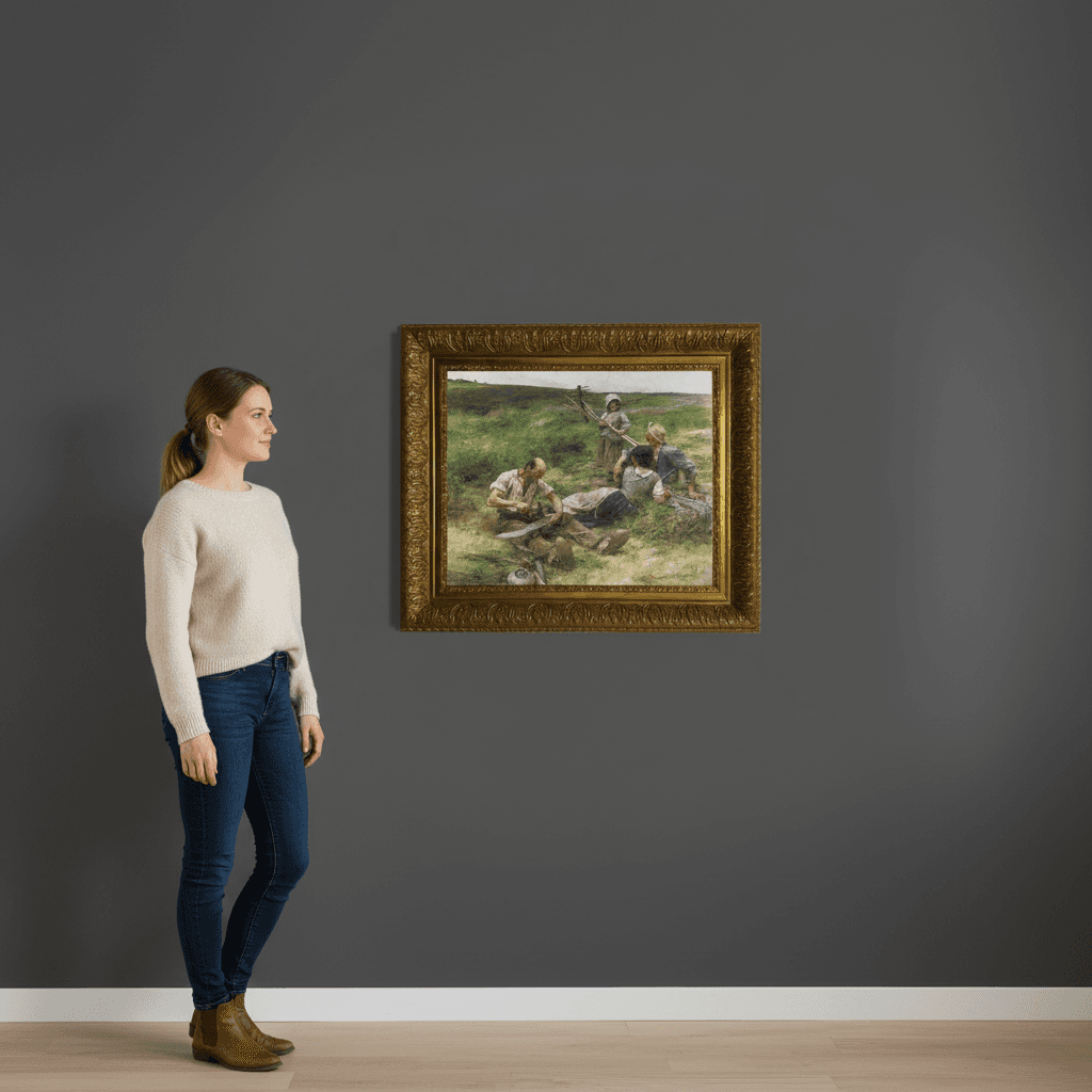 กรอบรูปลายหลุยส์ งานภาพพิมพ์ สไตล์ สีน้ำมันบนผ้าใบ ภาพ Haymaking ของ LéonAugusti hermitte (1844–1925)