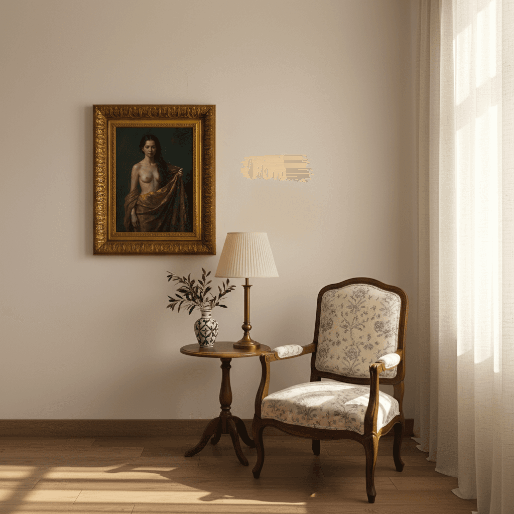 กรอบรูปลายหลุยส์ งานภาพพิมพ์ สไตล์ สีน้ำมันบนผ้าใบ ภาพ Erotic Traditional Portrait