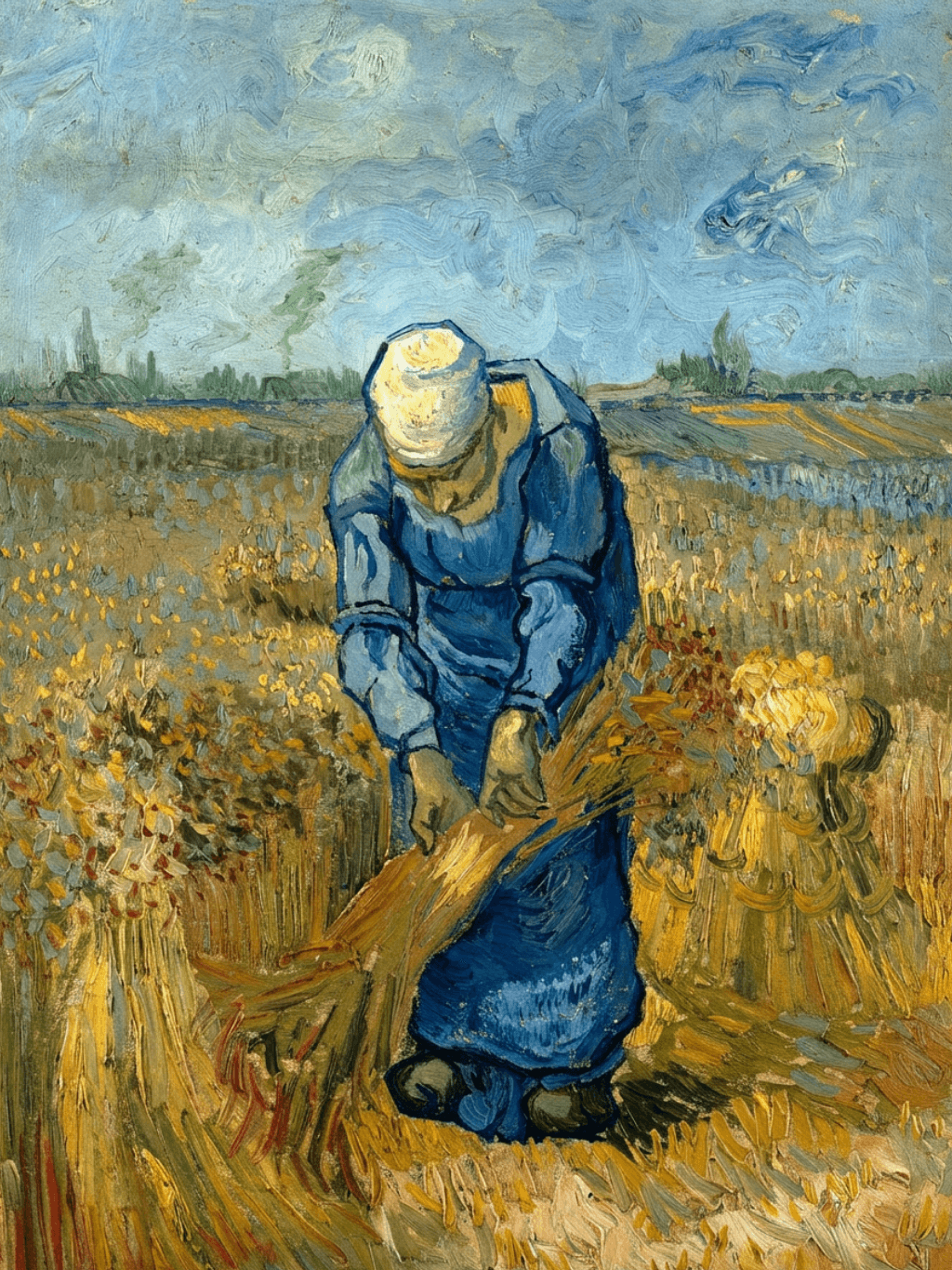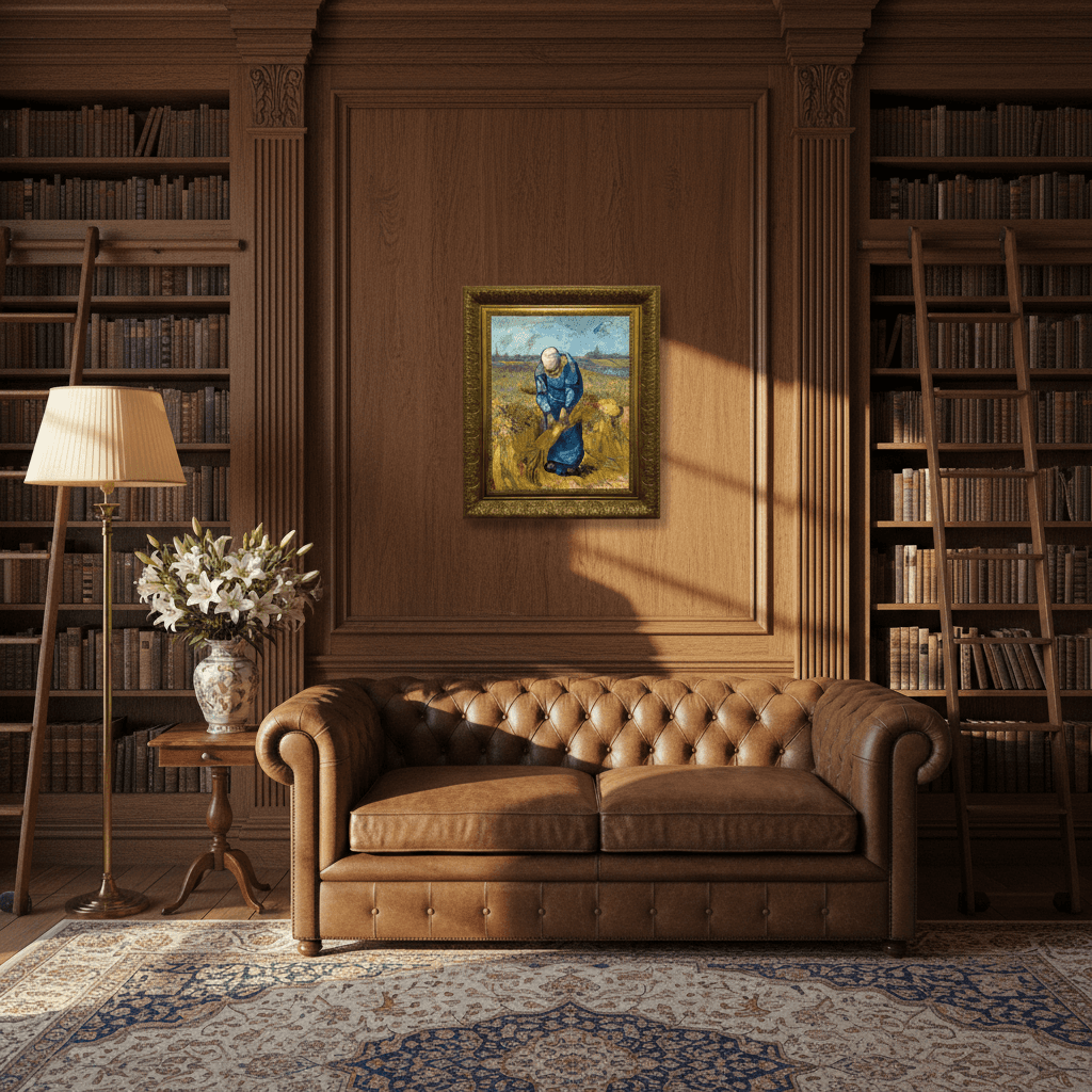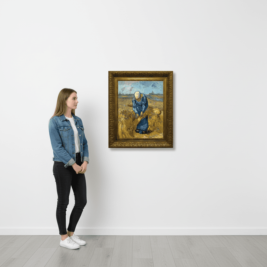 กรอบรูปลายหลุยส์ งานภาพพิมพ์ สไตล์ สีน้ำมันบนผ้าใบ ภาพ Peasant Woman Binding Sheaves (After Millet) Vincent van Gogh (Dutch, 1853-1890)