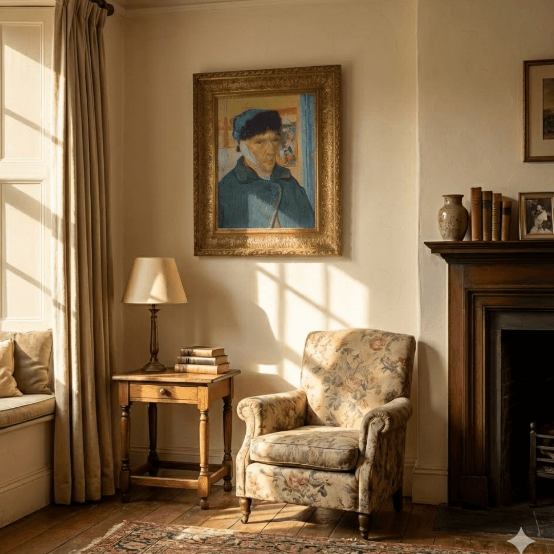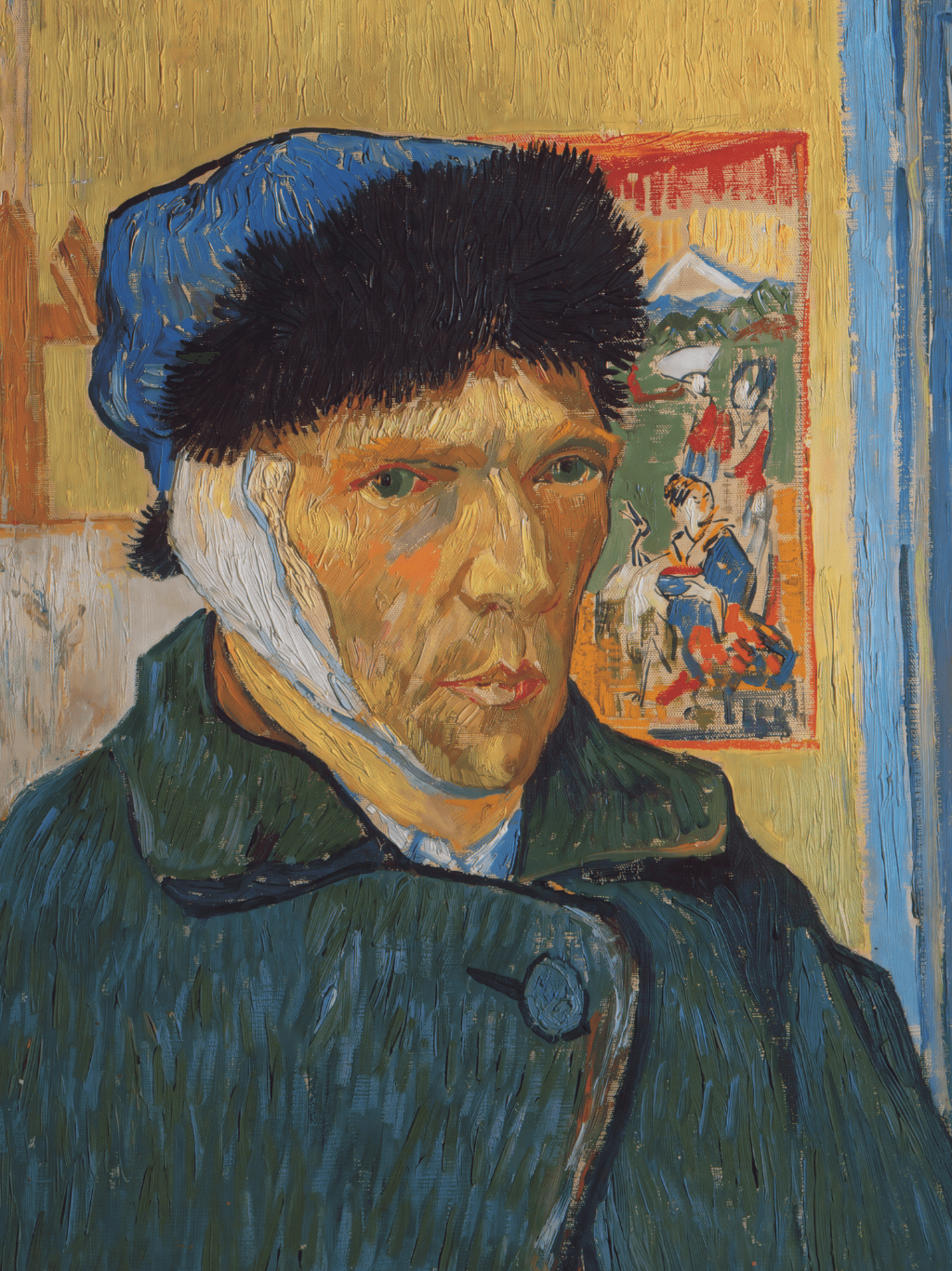 กรอบรูปลายหลุยส์เก่า งานภาพพิมพ์ สไตล์ สีน้ำมันบนผ้าใบ ภาพ Self-Portrait with Bandaged Ear ของ Vincent van Gogh