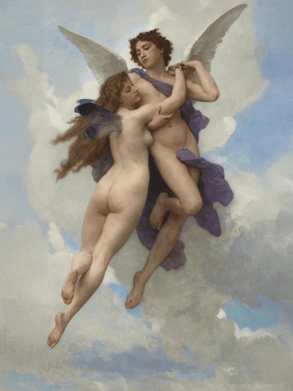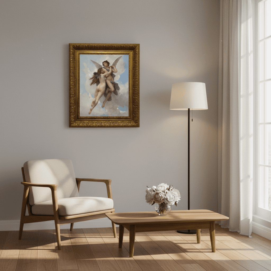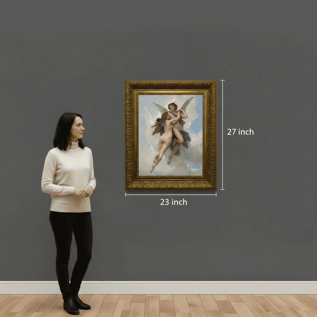 กรอบรูปลายหลุยส์ งานภาพพิมพ์ สไตล์ สีน้ำมันบนผ้าใบ ภาพ L’amour et psyché (1899) William Bouguereau (French, 1825-1905)
