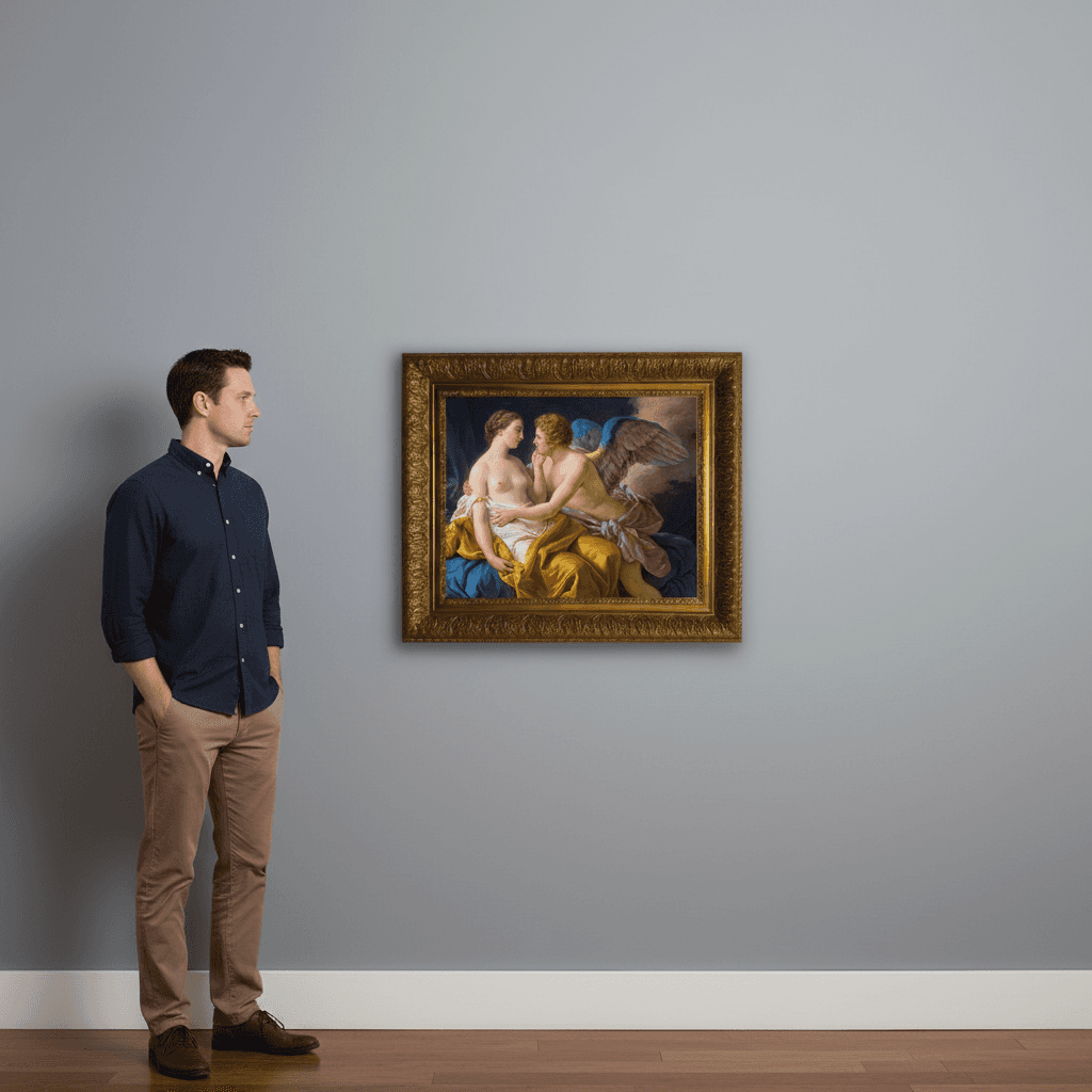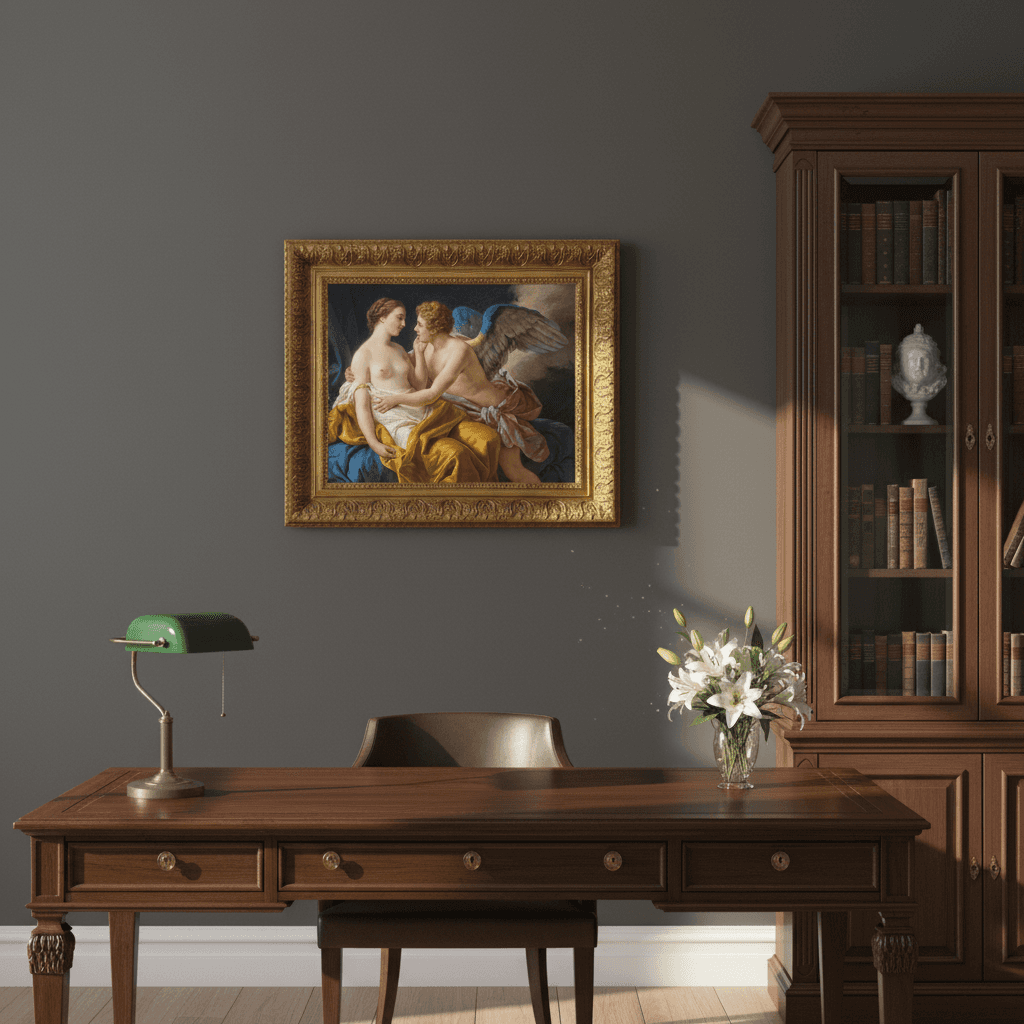 กรอบรูปลายหลุยส์ งานภาพพิมพ์ สไตล์ สีน้ำมันบนผ้าใบ ภาพ Cupid and Psyche (1767) Louis-Jean-François Lagrenée (French, 1724 - 1805)
