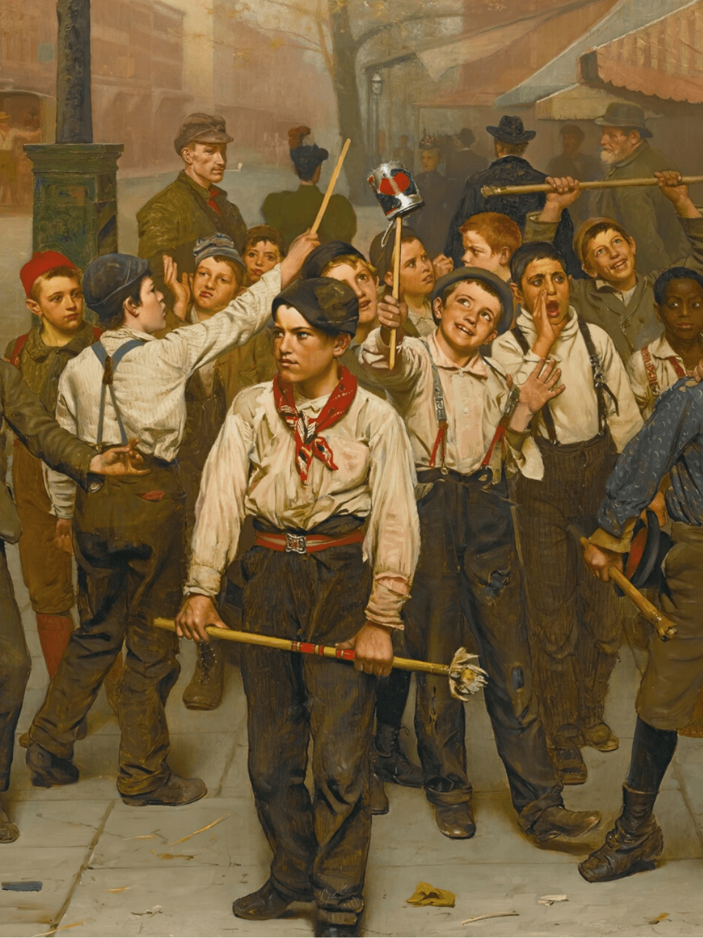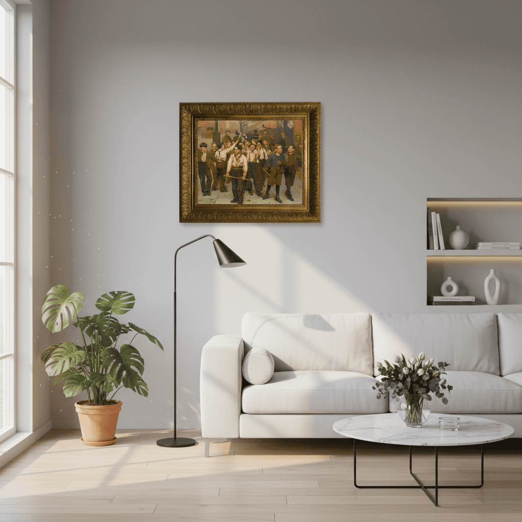 กรอบรูปลายหลุยส์ งานภาพพิมพ์ สไตล์ สีน้ำมันบนผ้าใบ ภาพ Our Gang (circa 1894) John George Brown (American, 1831-1913)