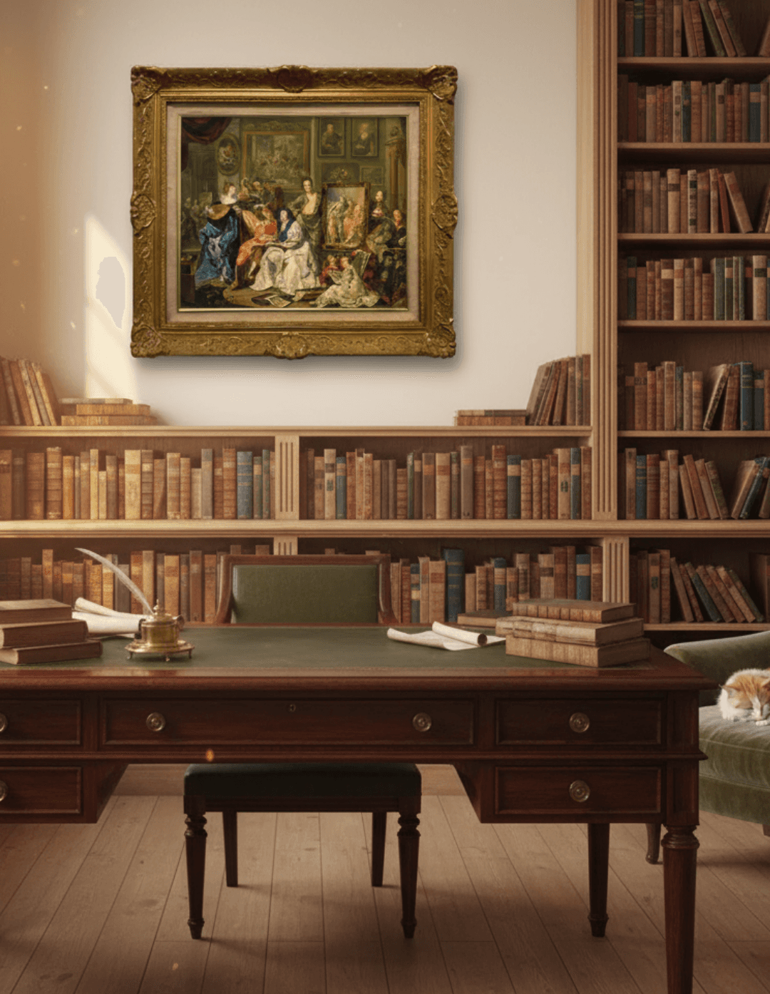 กรอบรูปลายหลุยส์ ขอบลายใหญ่สีทอง งานภาพพิมพ์สไตล์สีน้ำมัน บนผ้าใบ รูป JOHANN GEORG PLATZER (ST. PAUL IN EPPAN 1704-1761 ST. MICHAEL IN EPPAN)