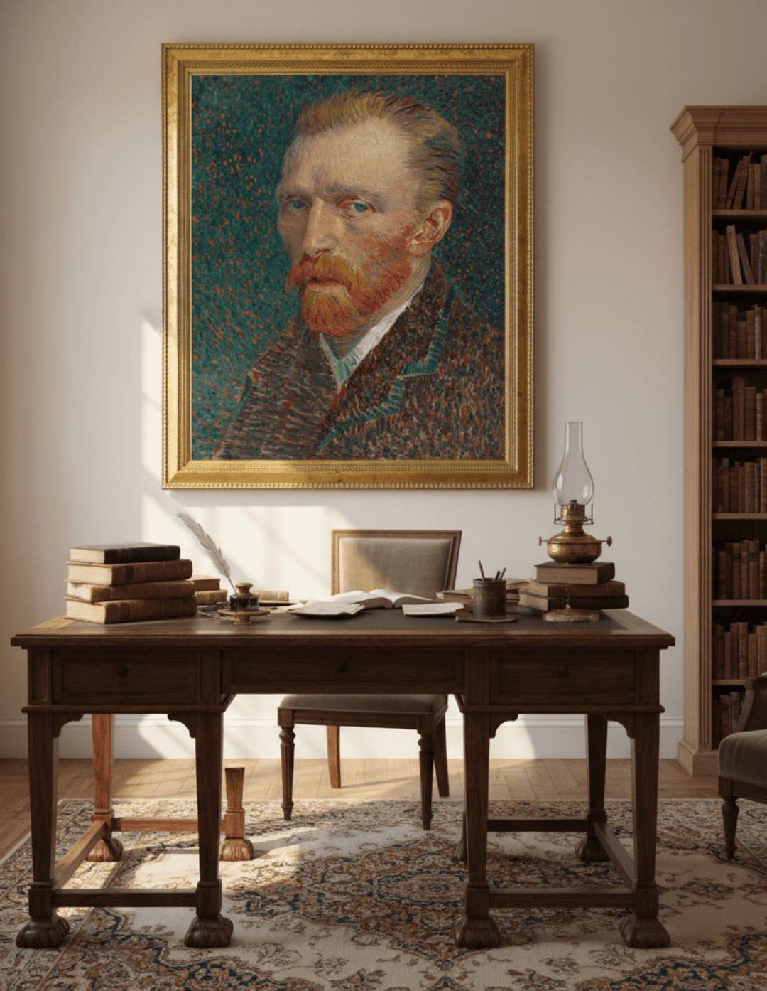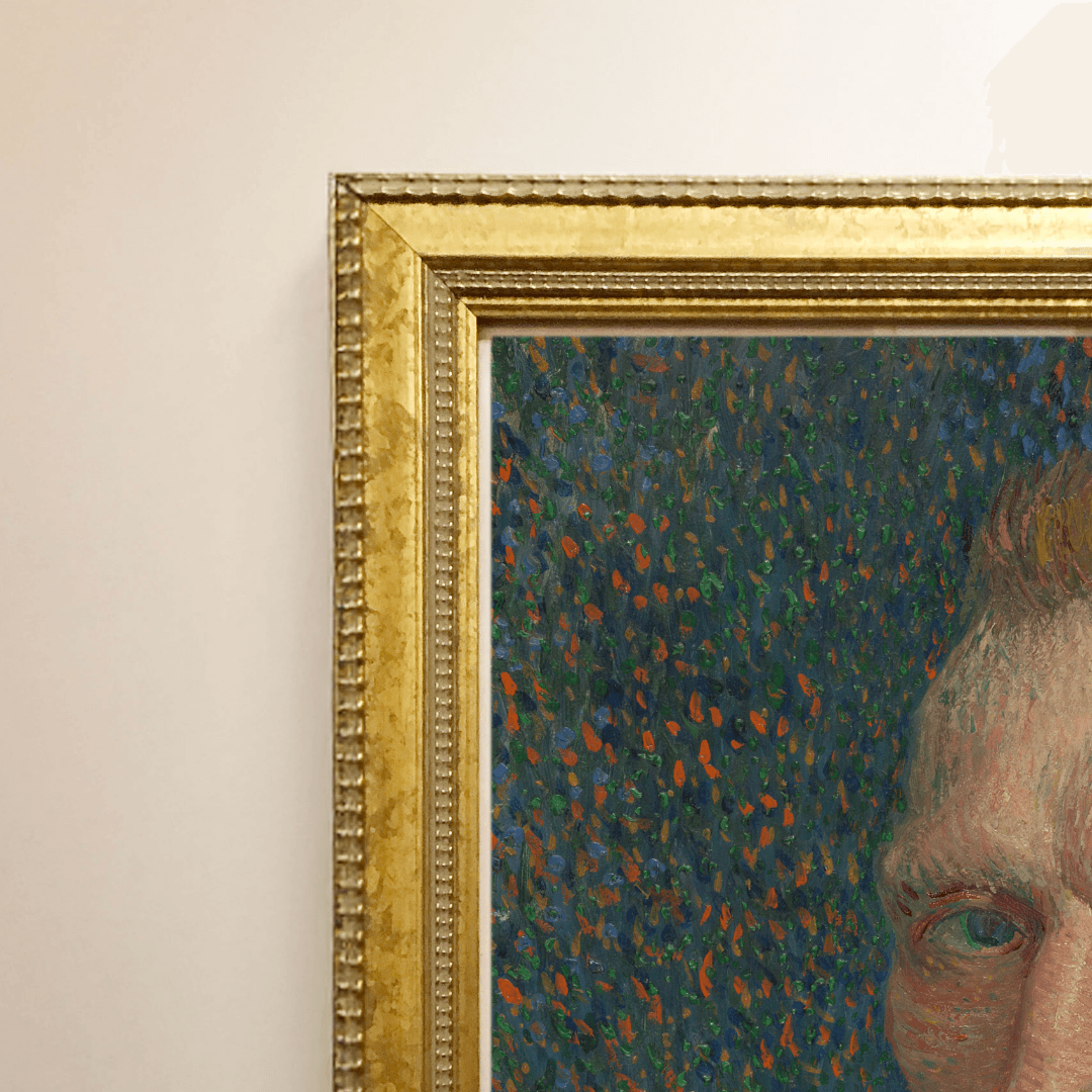 กรอบไม้แท้สีทองขอบลาย Vintage ภาพพิมพ์ สไตล์สีน้ำมัน บนผ้าใบ ผลงาน Vincent Van Gogh's ชื่อภาพ Self-Portrait