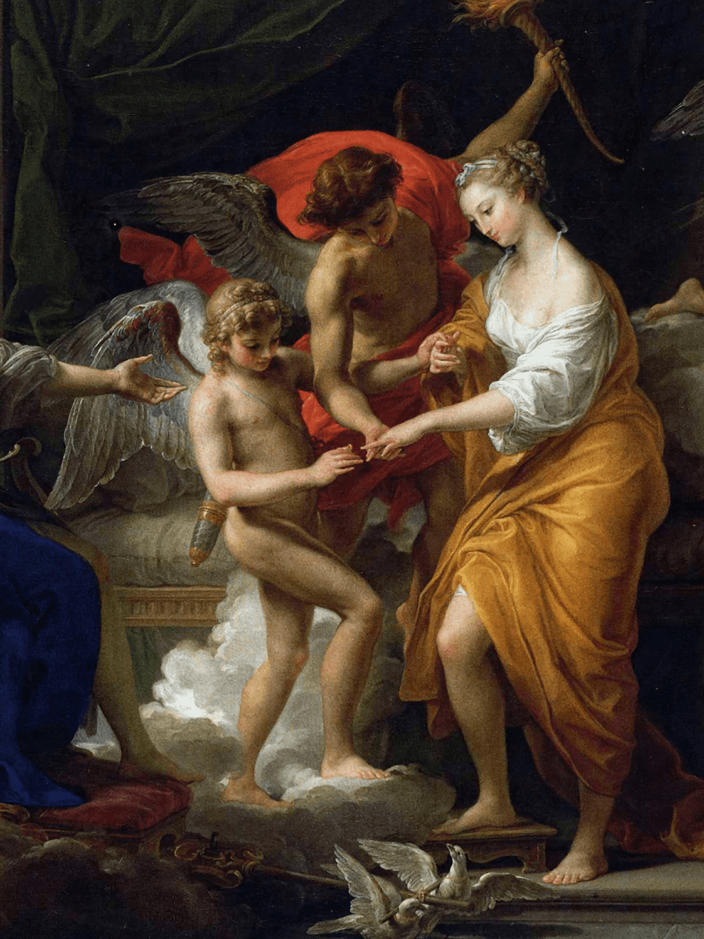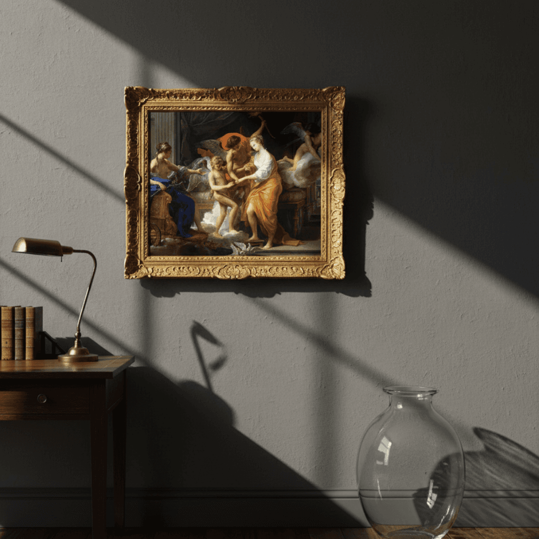 กรอบรูปลายหลุยส์เก่า งานภาพพิมพ์ สไตล์ สีน้ำมันบนผ้าใบ ภาพ The Marriage Of Cupid And Psyche (1756) Pompeo Batoni (Italian, 1708-1787)