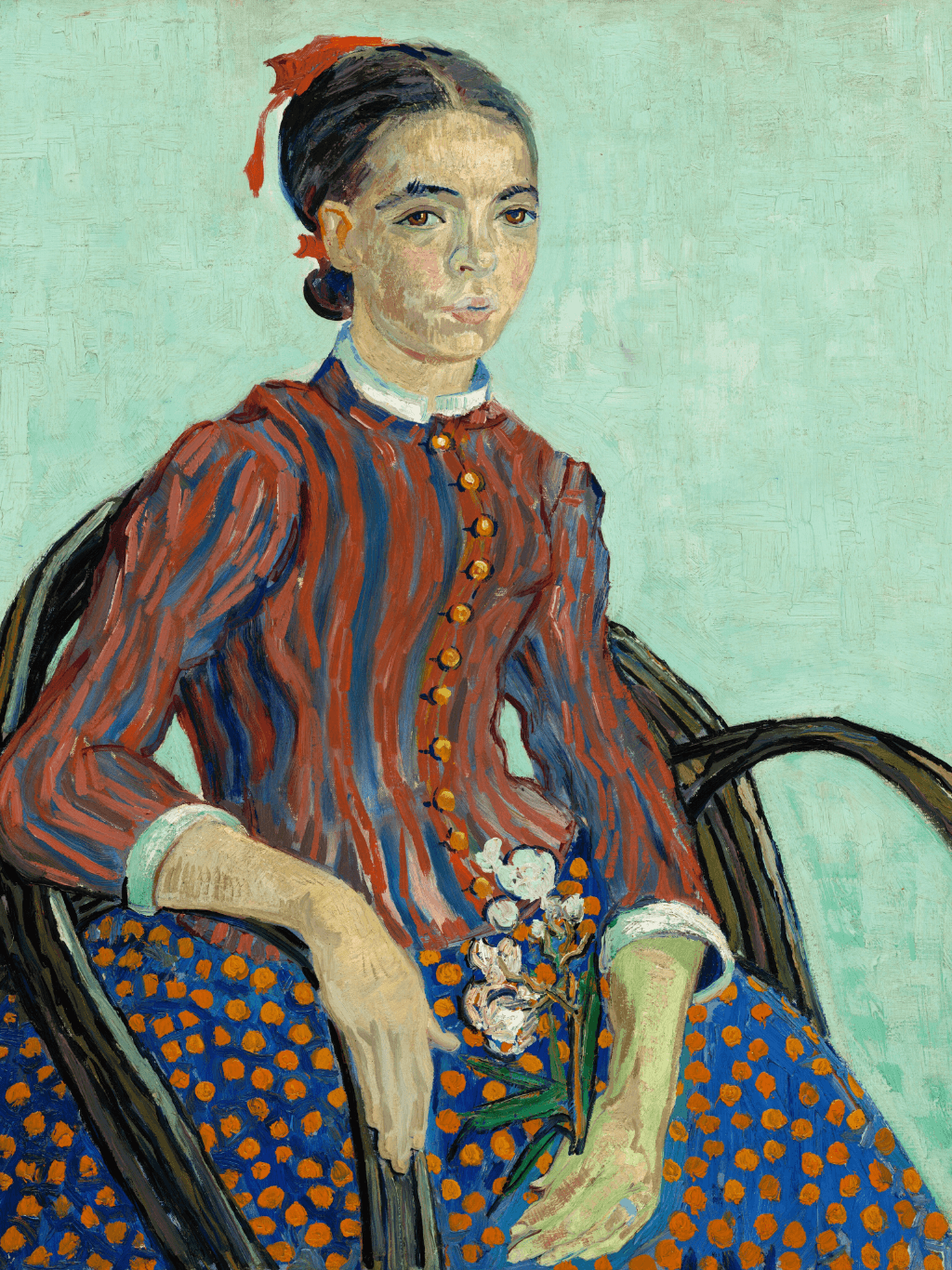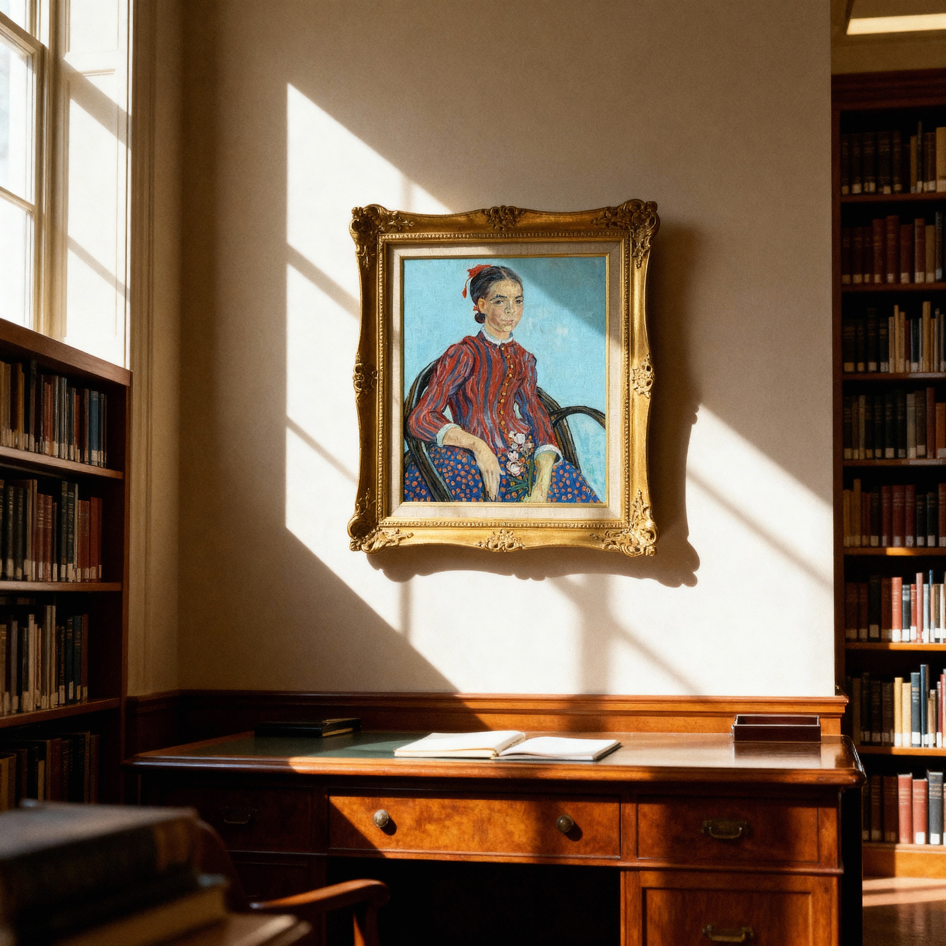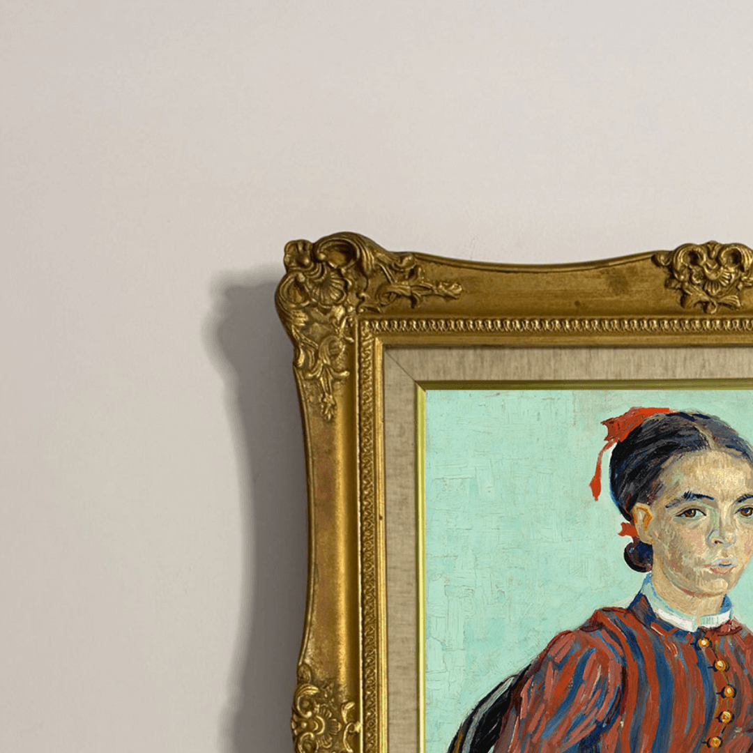 กรอบหลุยส์เก่า ภาพพิมพ์ สไตล์สีน้ำมัน บน ผ้าใบ งาน La Mousmé of Vincent van Gogh 1888
