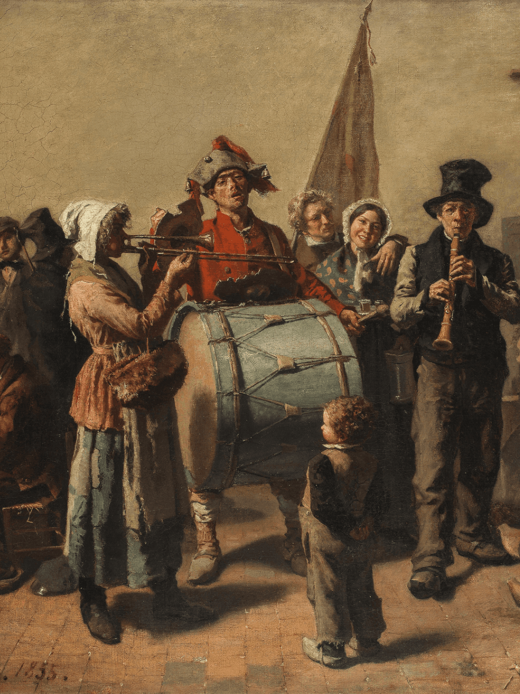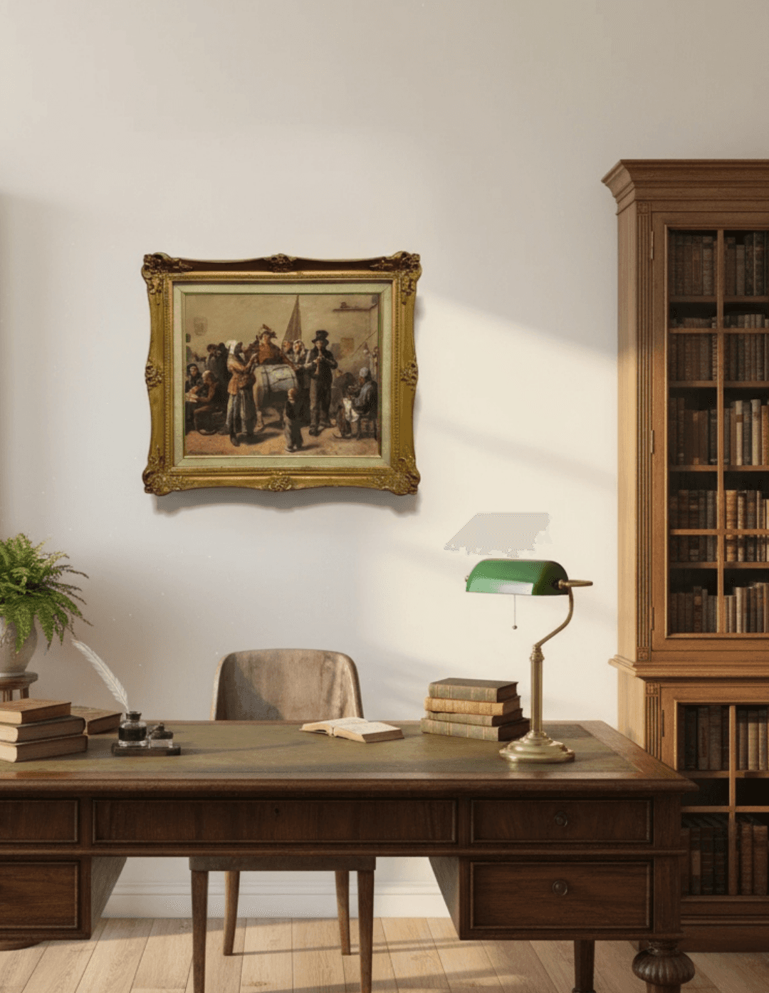 กรอบหลุยส์เก่า ภาพพิมพ์ สไตล์สีน้ำมัน บน ผ้าใบ งาน Jules Breton Le Lendemain de la Saint Sébastien, 1855
