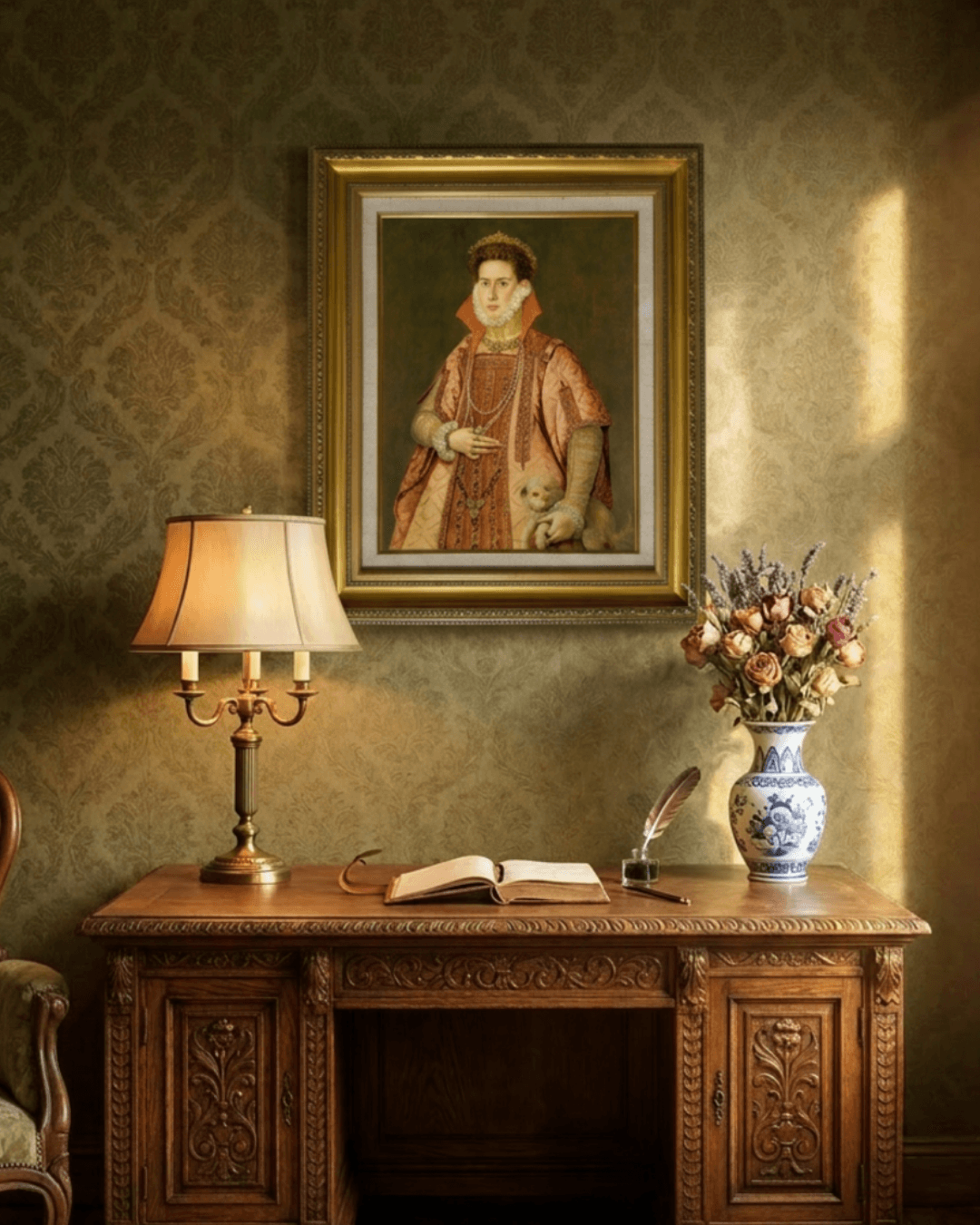 กรอบรูปหลุยส์ ลายเก่า งานภาพพิมพ์ความละเอียดสูงสไตล์ สีน้ำมันบนผ้าใบ ภาพ The Portrait of a Woman Alonso Sánchez Coello (Spanish, 1531–1588)