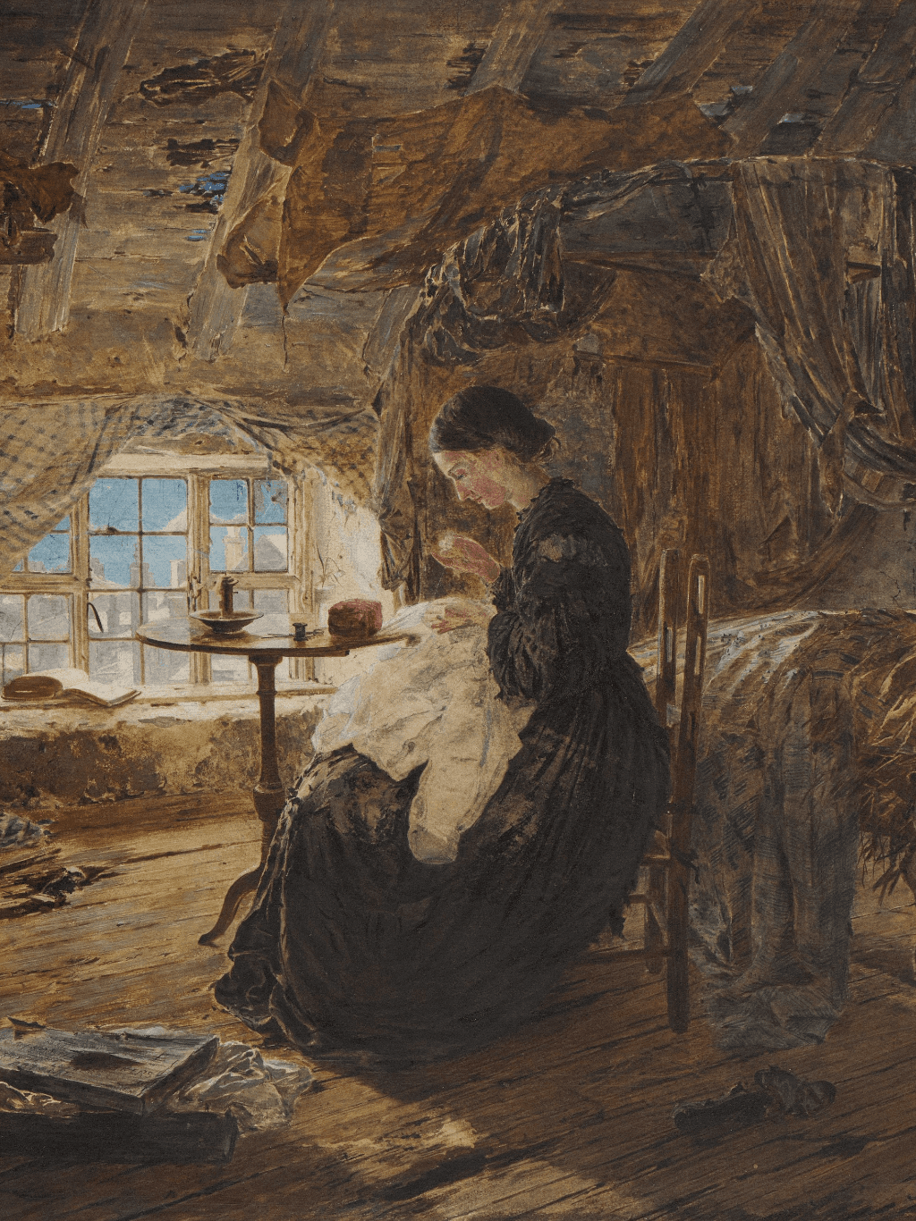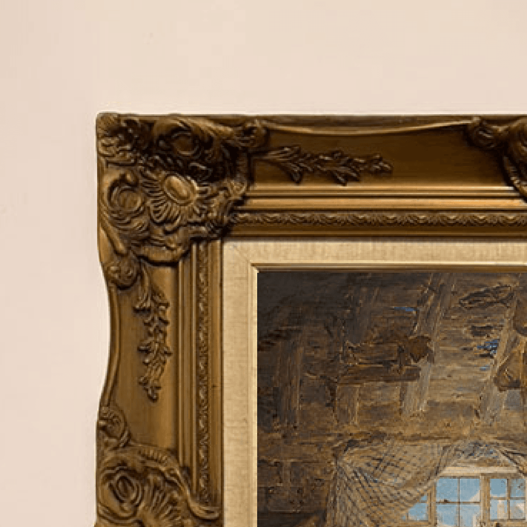 กรอบรูปลายหลุยส์เก่า ขอบลายใหญ่สีทอง งานภาพพิมพ์มีรายละเอียด บน Canvas ภาพ The Song of The Shirt, 1867 William Jabez Muckley