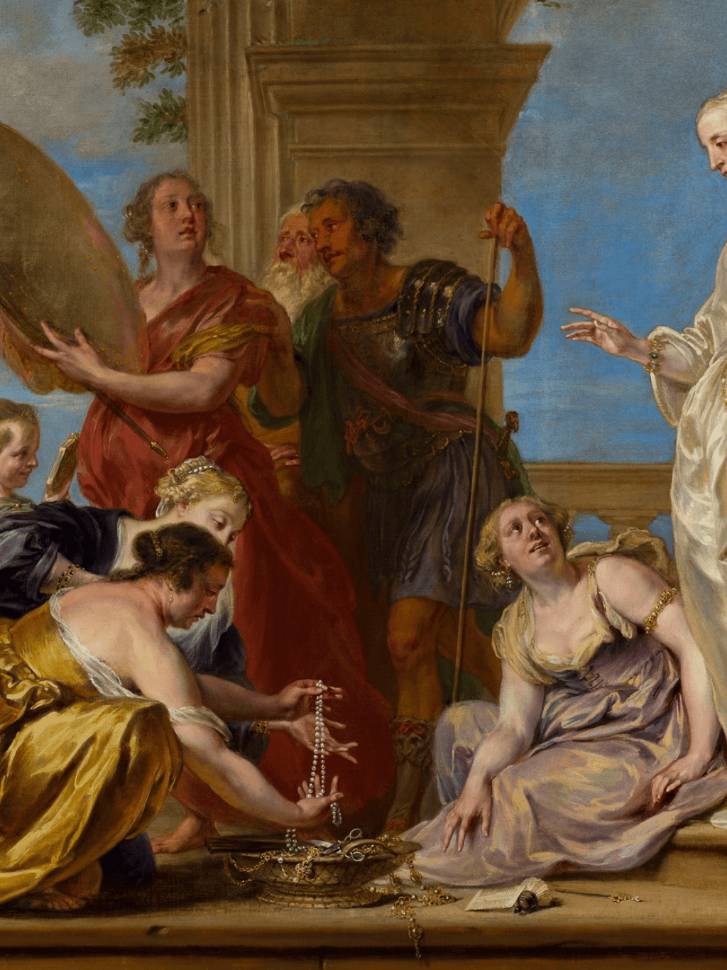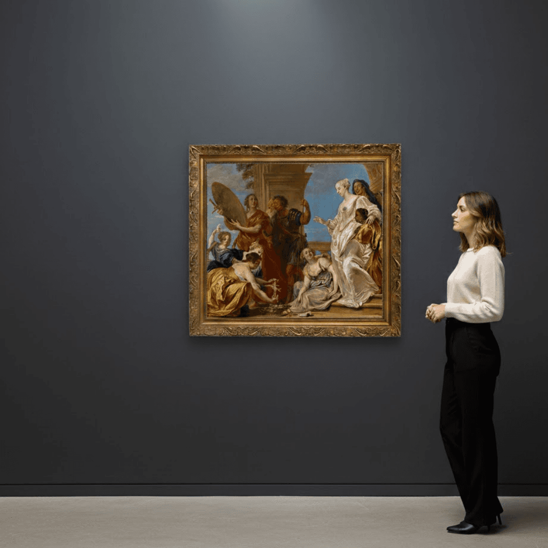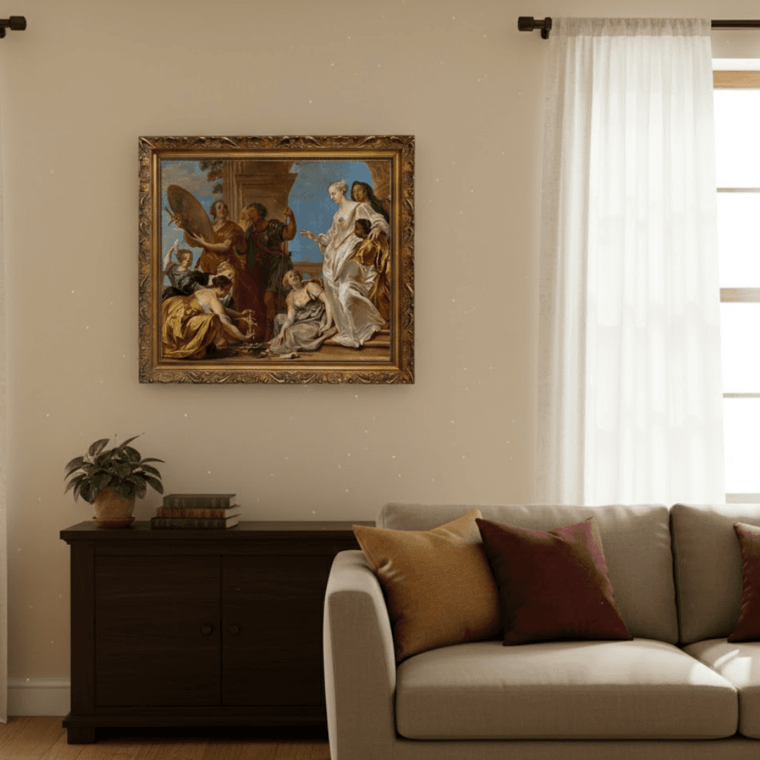 กรอบรูปลายหลุยส์เก่าไม้แท้ งานภาพพิมพ์ สไตล์ สีน้ำมันบนผ้าใบ ภาพ Achilles among the Daughters of Lycomedes (Ovid, Metamorphoses, XIII, 162–170, Publius Papinius Statius (ca. 45–96))