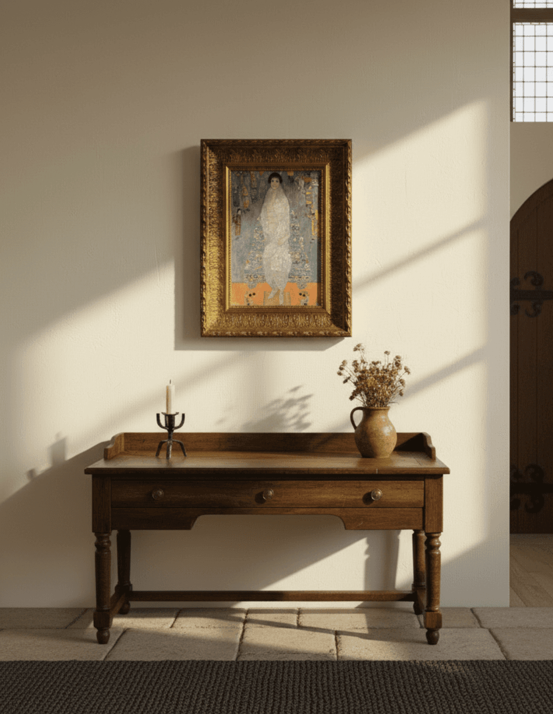 กรอบรูปลายหลุยส์เก่า งานภาพพิมพ์ สไตล์ สีน้ำมันบนผ้าใบ ภาพ Bildnis Elisabeth Lederer (Portrait of Elisabeth Lederer) ของ Gustav Klimt