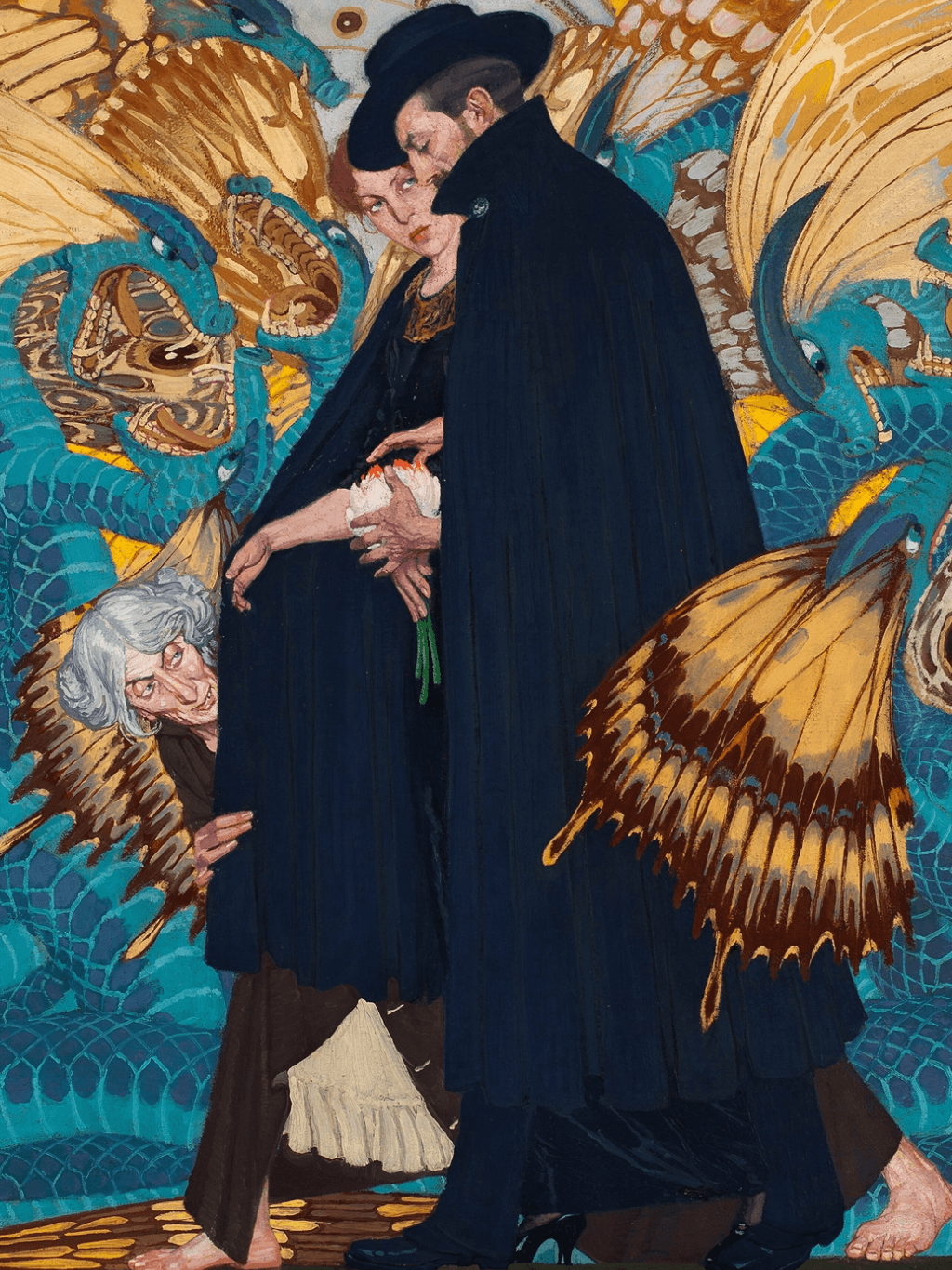 กรอบรูปลายหลุยส์สีดำด้าน งานภาพพิมพ์ สไตล์ สีน้ำมันบนผ้าใบ ภาพ The War and Us (1917) Edward Okuń (Polish, 1872–1945)