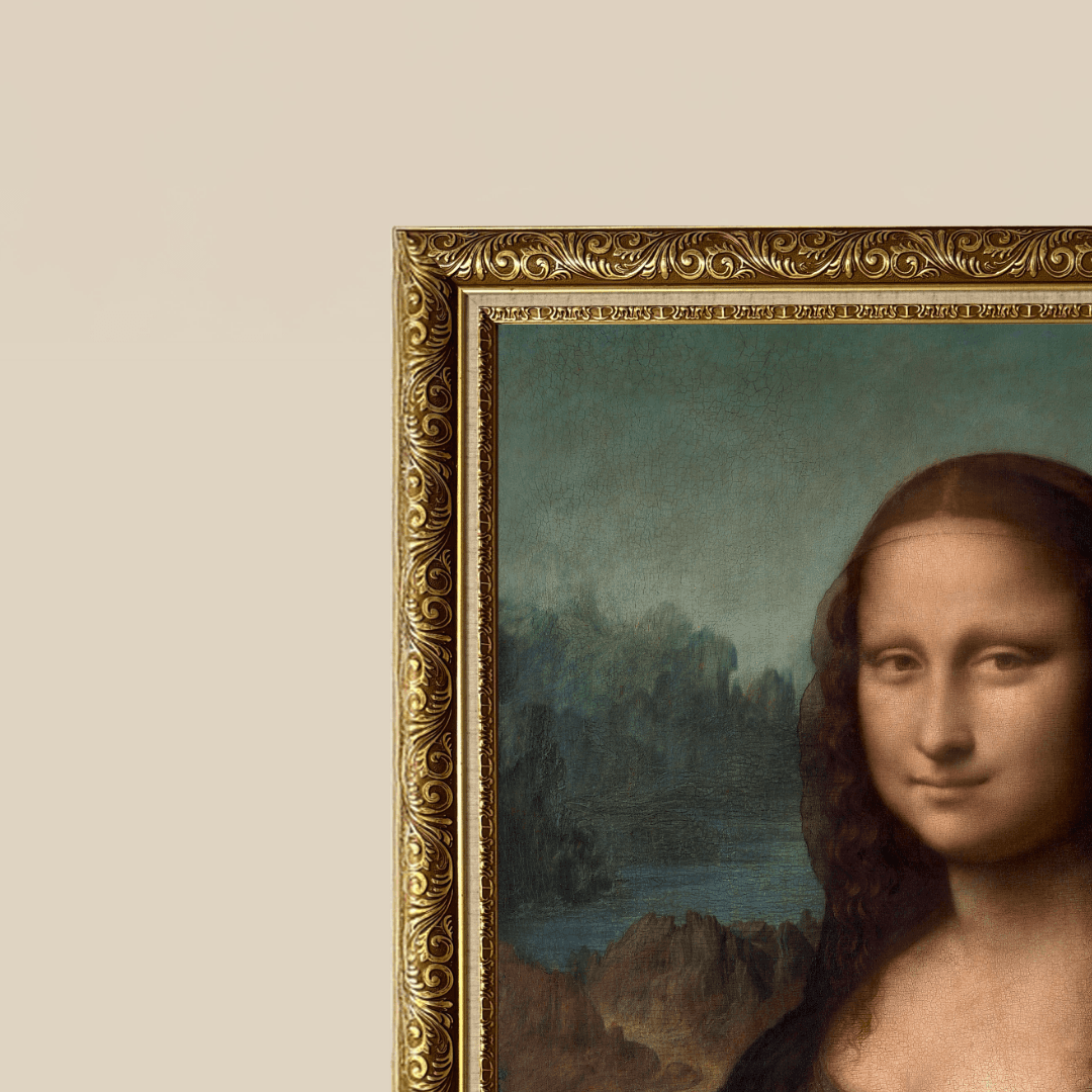 กรอบรูปขอบลายหลุยส์สีทอง งาน Reproduction ภาพพิมพ์ Monalisa แบบมีรายละเอียดสูง จากผลงานของ ศิลปิน: Leonardo da Vinci (ค.ศ. 1452–1519) ศิลปินและนักปราชญ์ชาวอิตาลีแห่งยุคฟื้นฟูศิลปวิทยา (Renaissance)