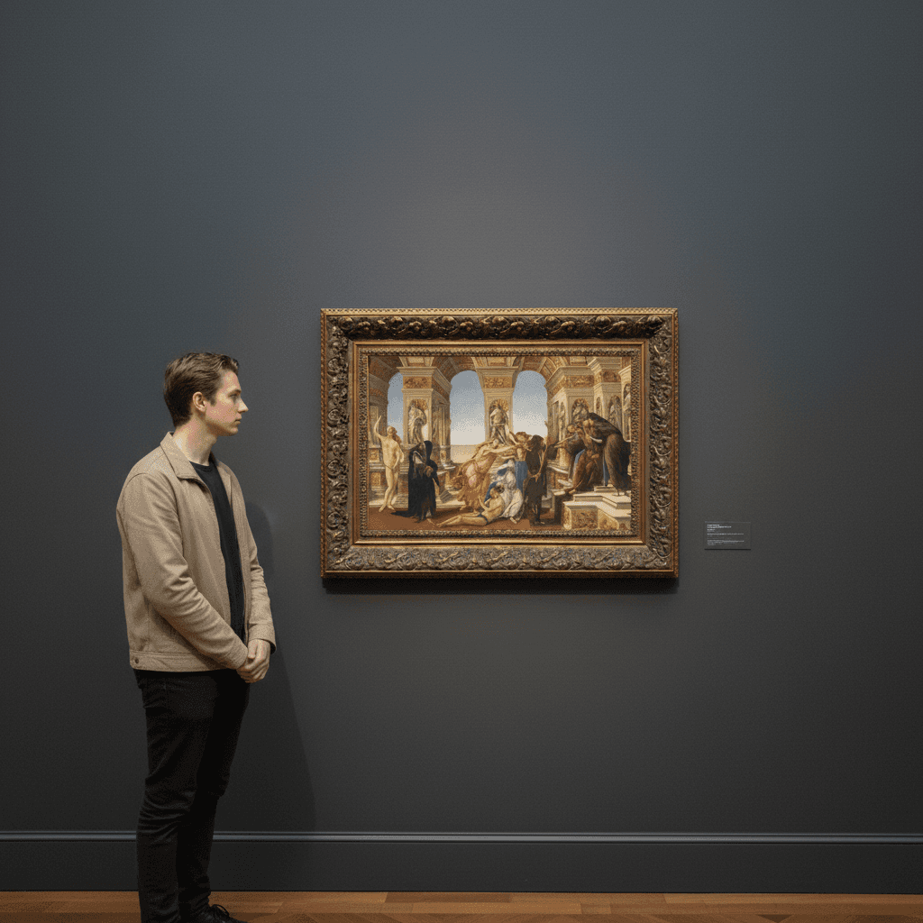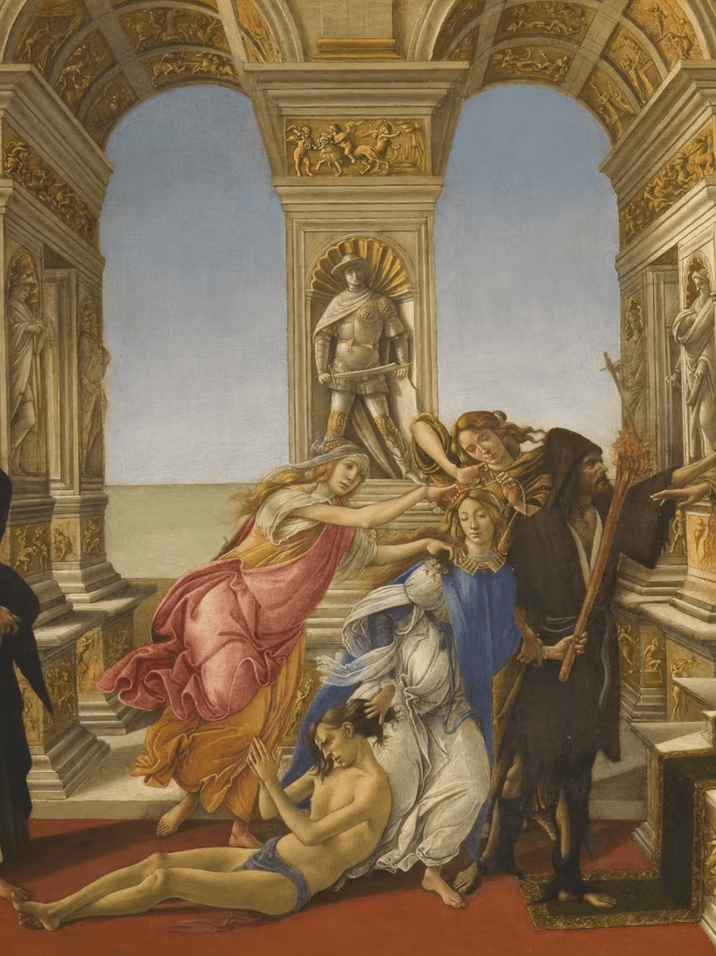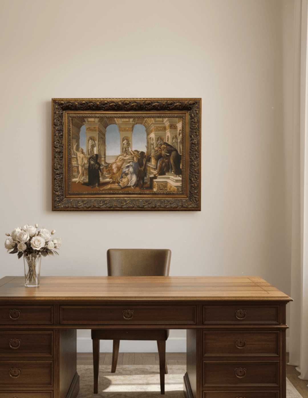 กรอบรูปลายหลุยส์เก่า งานภาพพิมพ์ สไตล์ สีน้ำมันบนผ้าใบ ภาพ Calumny of Apelles ของ Sandro Botticelli (1445–1510)