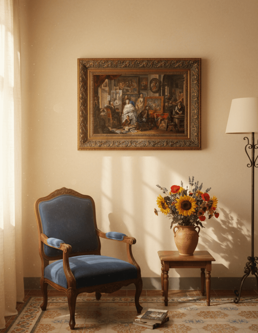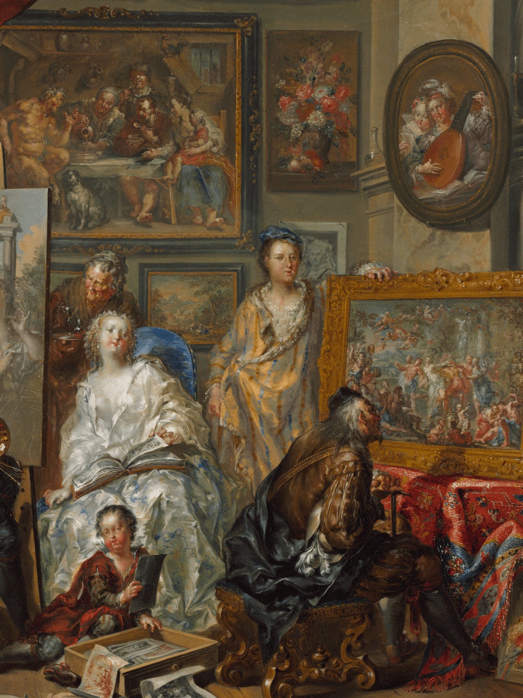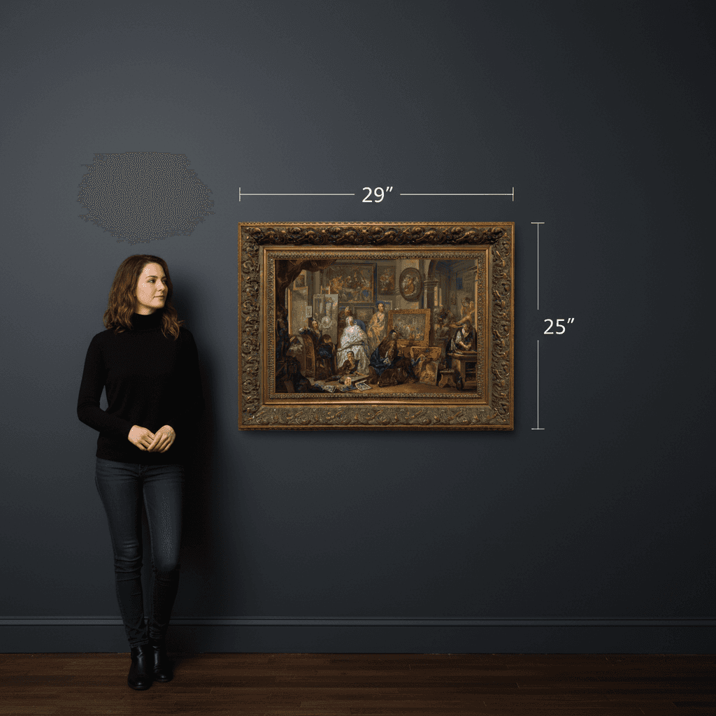 กรอบรูปลายหลุยส์เก่า งานภาพพิมพ์ สไตล์ สีน้ำมันบนผ้าใบ ภาพ CThe Artist's Studio by Johann Georg Platzer
