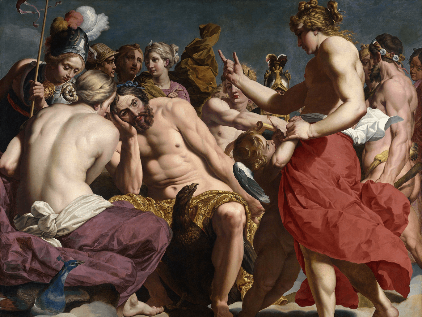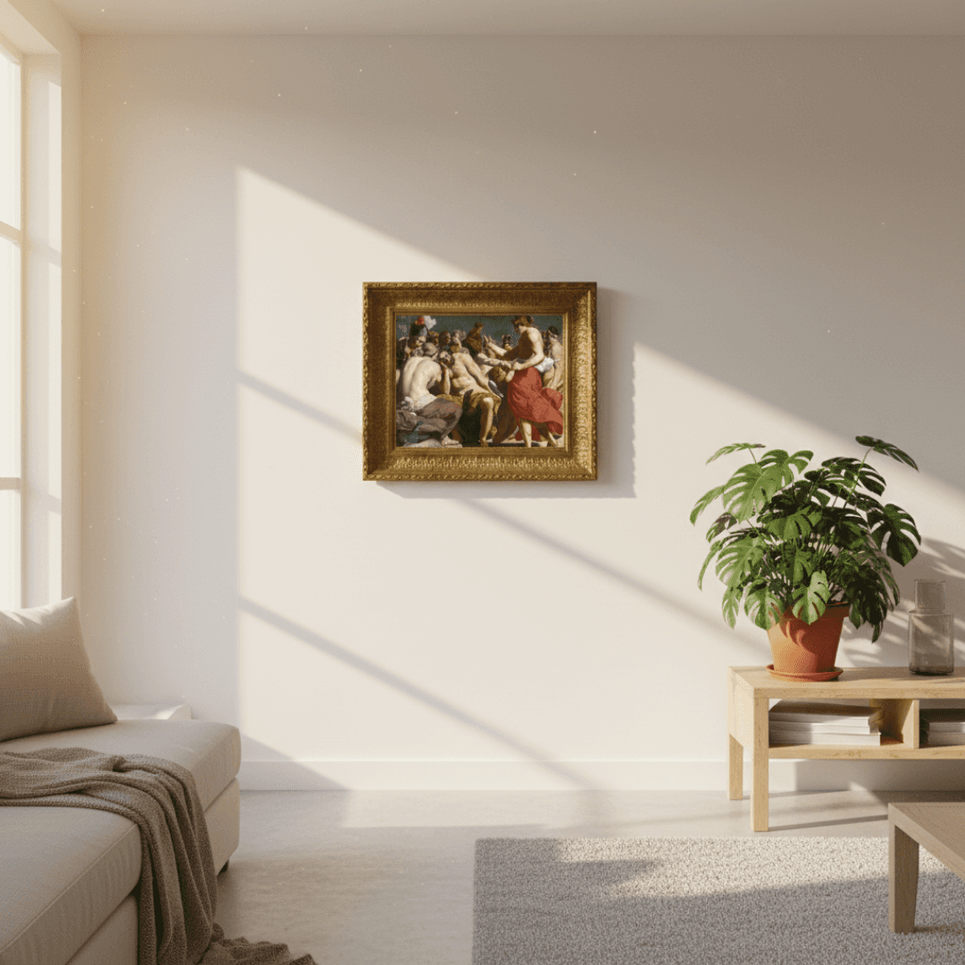 กรอบรูปลายหลุยส์เก่า งานภาพพิมพ์ สไตล์ สีน้ำมันบนผ้าใบ ภาพ Jupiter Rebuked By Venus (C. 1612) Abraham Janssens (Flemish, 1575–1632)