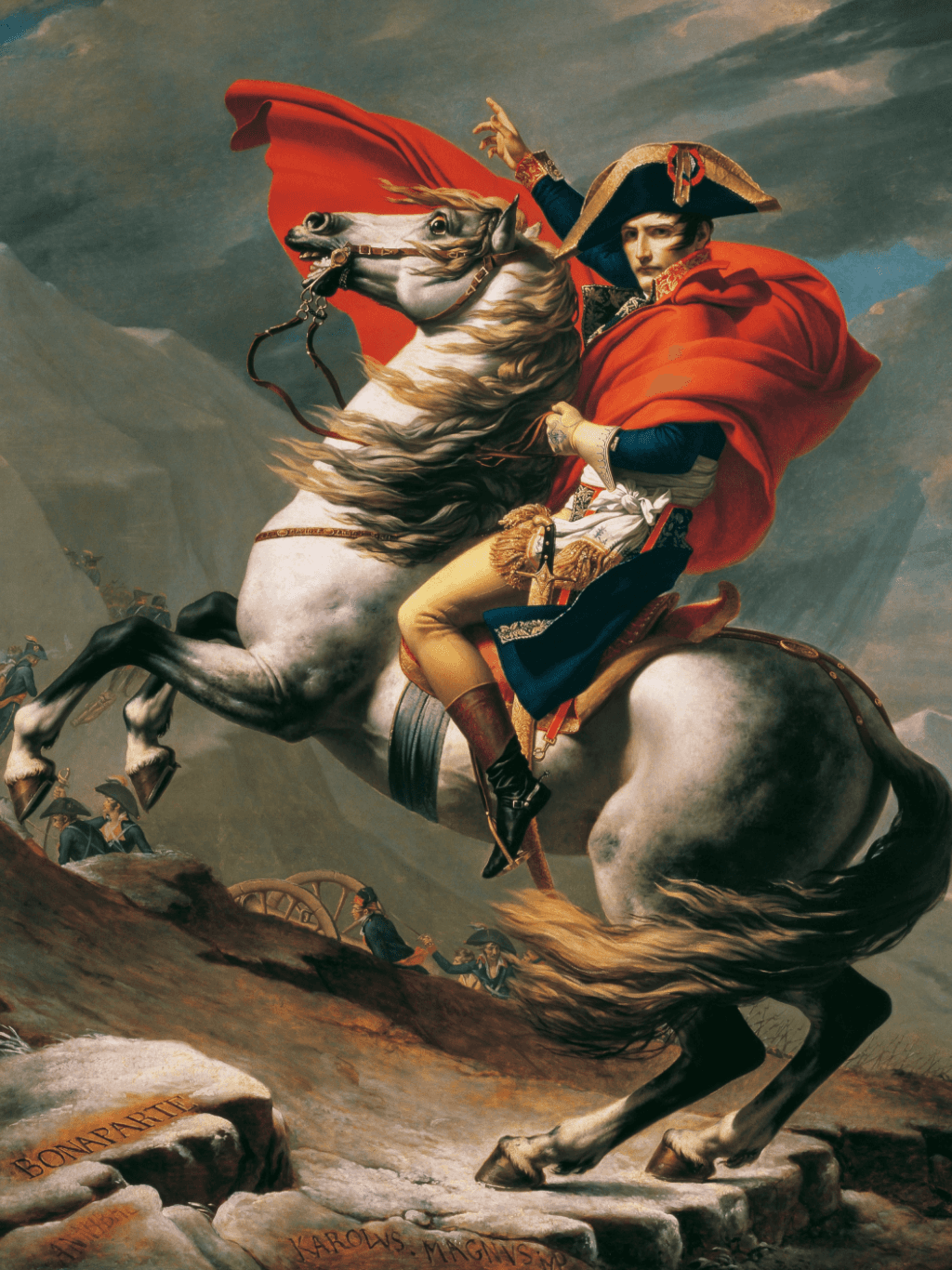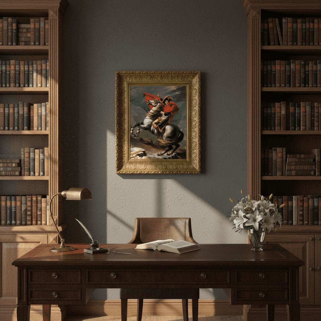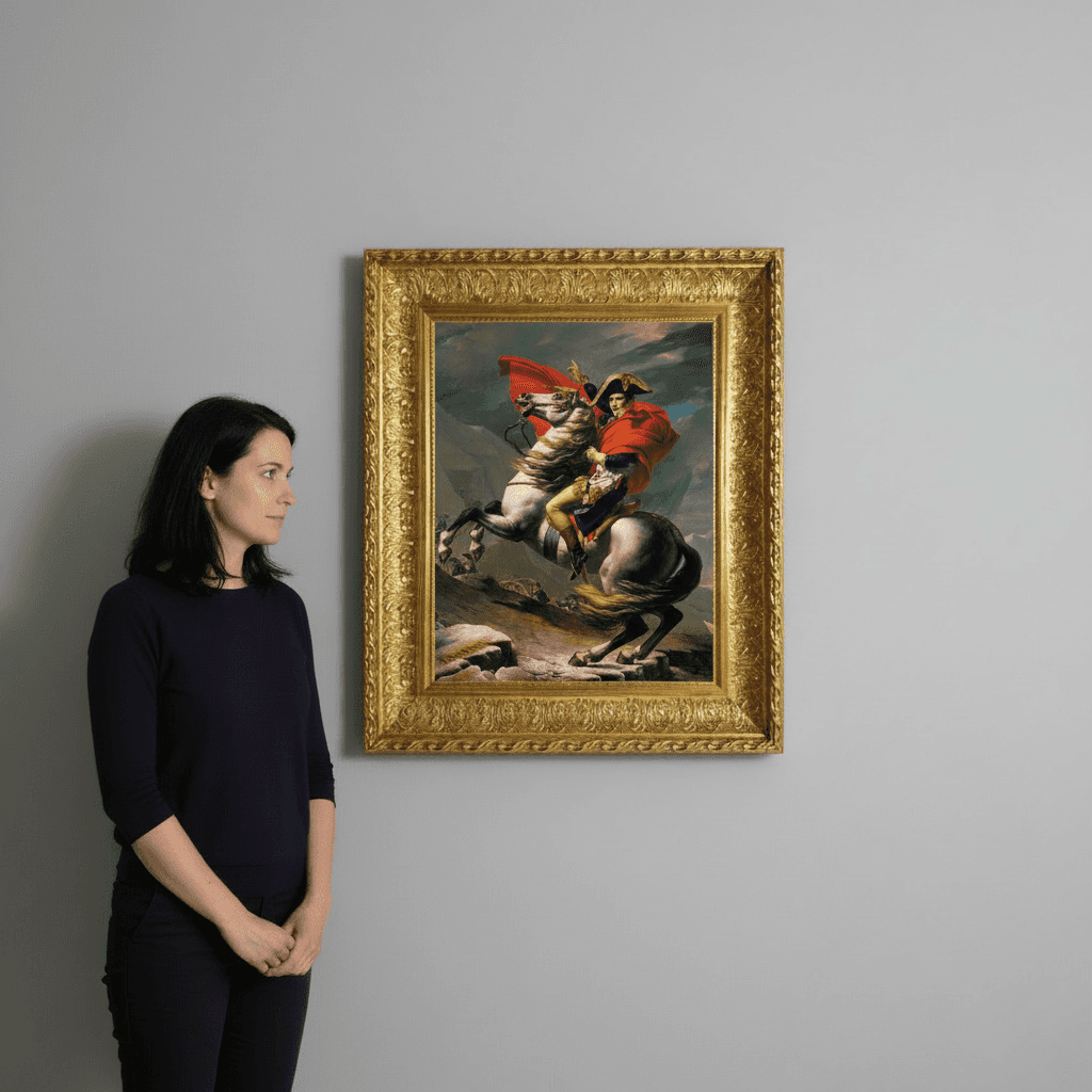 กรอบรูปลายหลุยส์เก่า งานภาพพิมพ์ สไตล์ สีน้ำมันบนผ้าใบ ภาพ Napoleon Crossing the Alps by Jacques-Louis David (1748–1825)