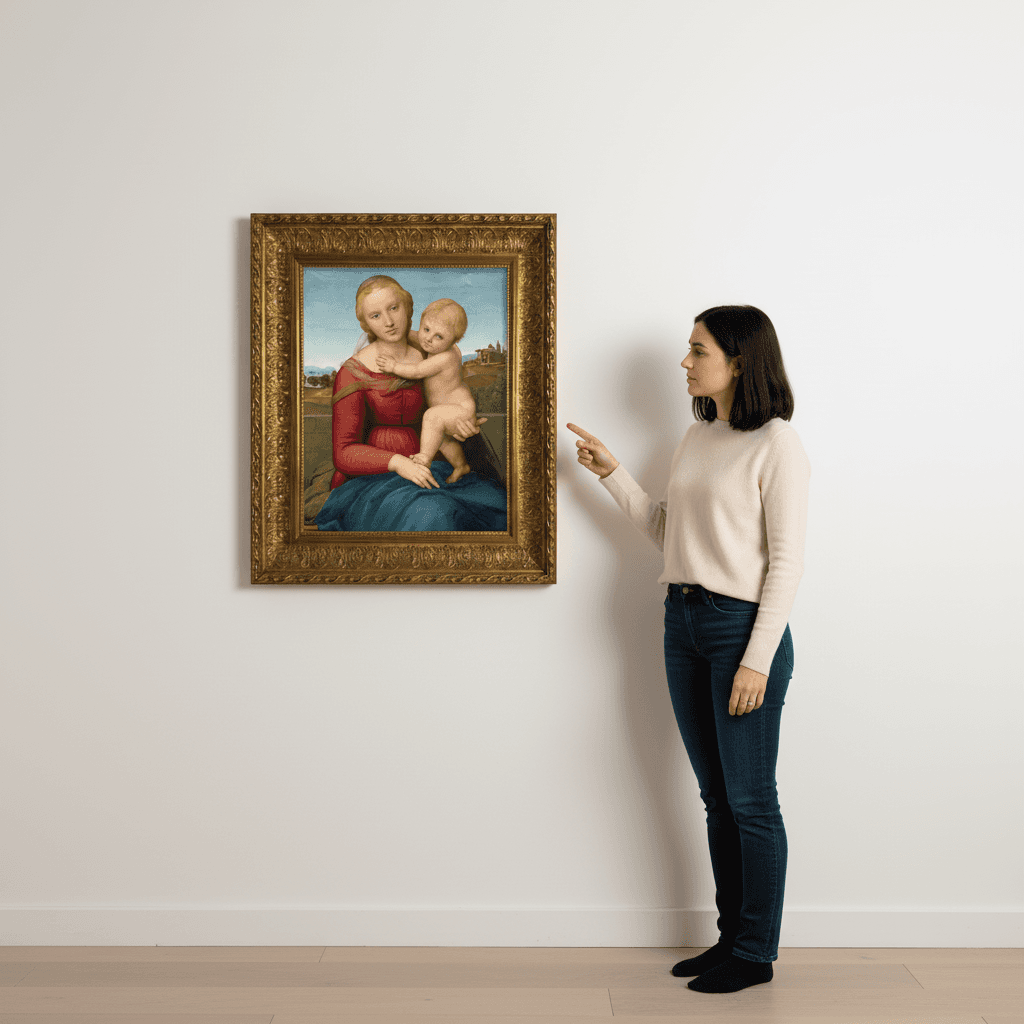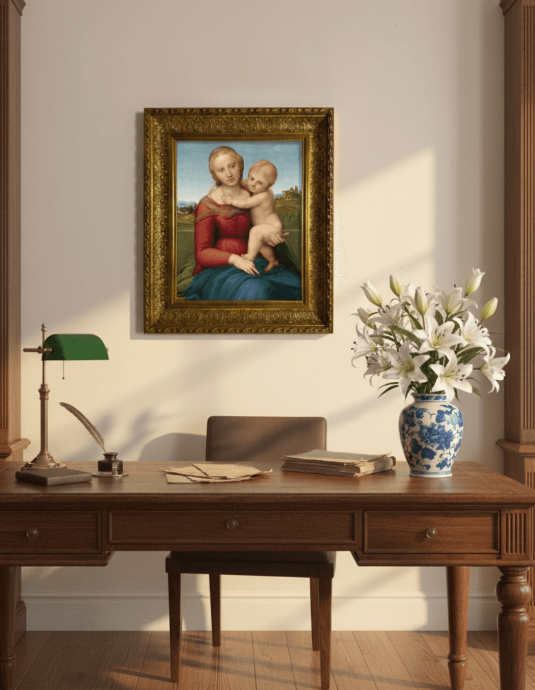 กรอบรูปลายหลุยส์เก่า งานภาพพิมพ์ สไตล์ สีน้ำมันบนผ้าใบ ภาพ Raphael's The Small Cowper Madonna (ca. 1505)
