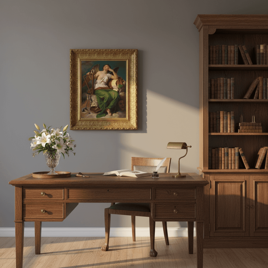 กรอบรูปลายหลุยส์เก่า งานภาพพิมพ์ สไตล์ สีน้ำมันบนผ้าใบ ภาพ Allegorie der Kunst by Karl von Blaas (1815–1894).jpg