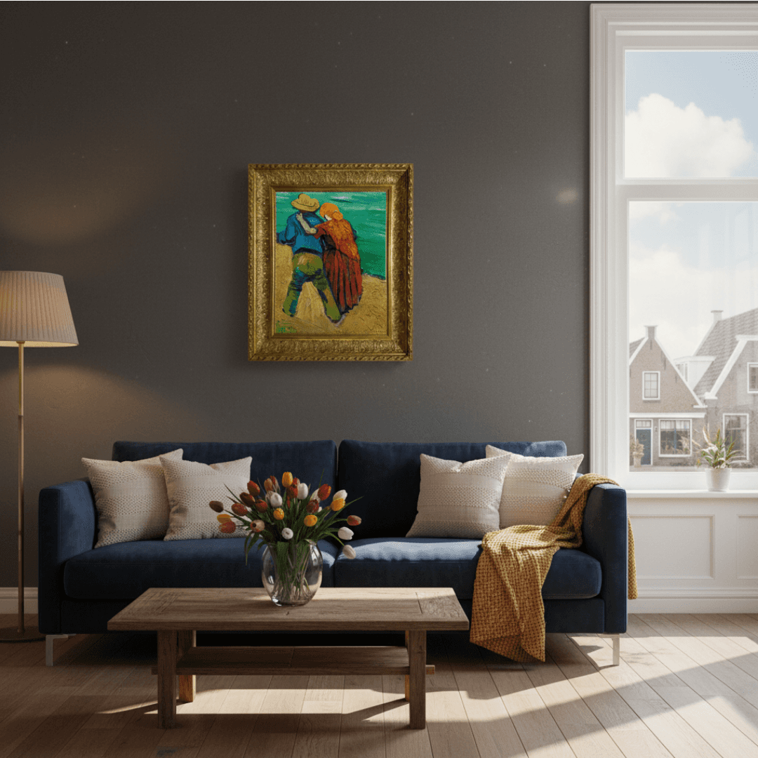 กรอบรูปลายหลุยส์เก่า งานภาพพิมพ์ สไตล์ สีน้ำมันบนผ้าใบ ภาพ Two Lovers (Fragment) by Vincent van Gogh (1853–1890)