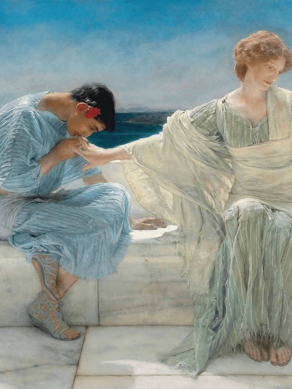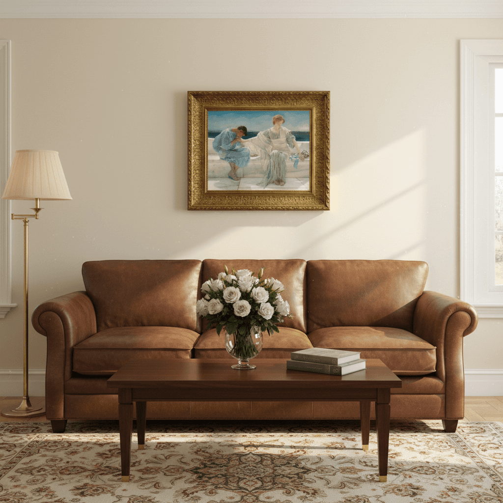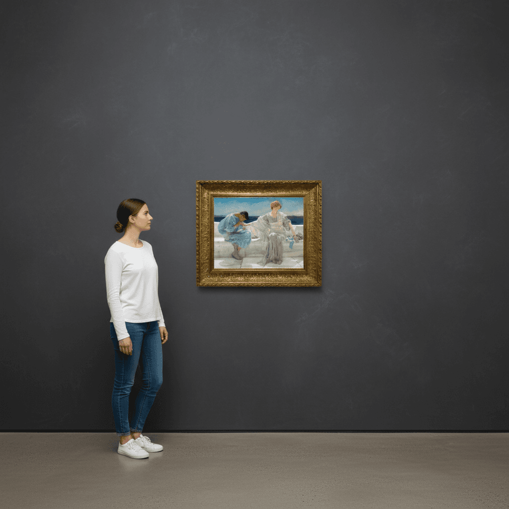 กรอบรูปลายหลุยส์เก่า งานภาพพิมพ์ สไตล์ สีน้ำมันบนผ้าใบ ภาพ Ask me no more Lawrence Alma-Tadema (English, 1836-1912)