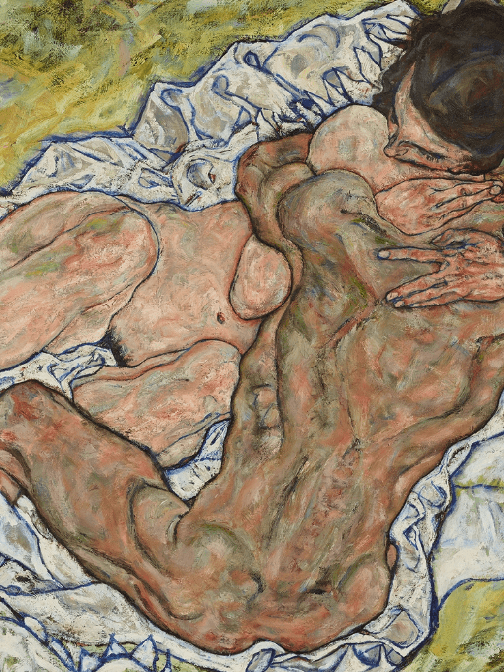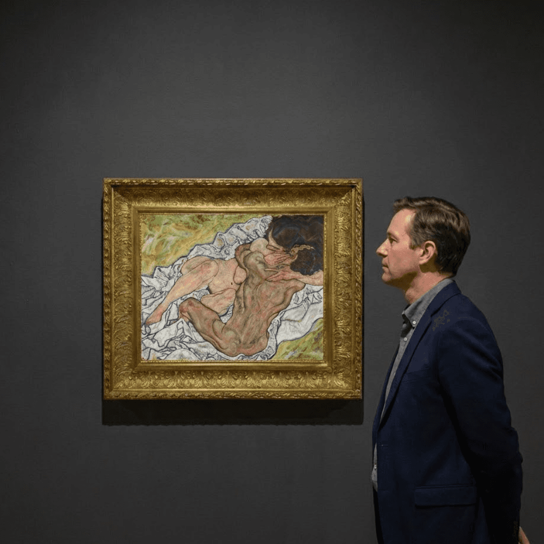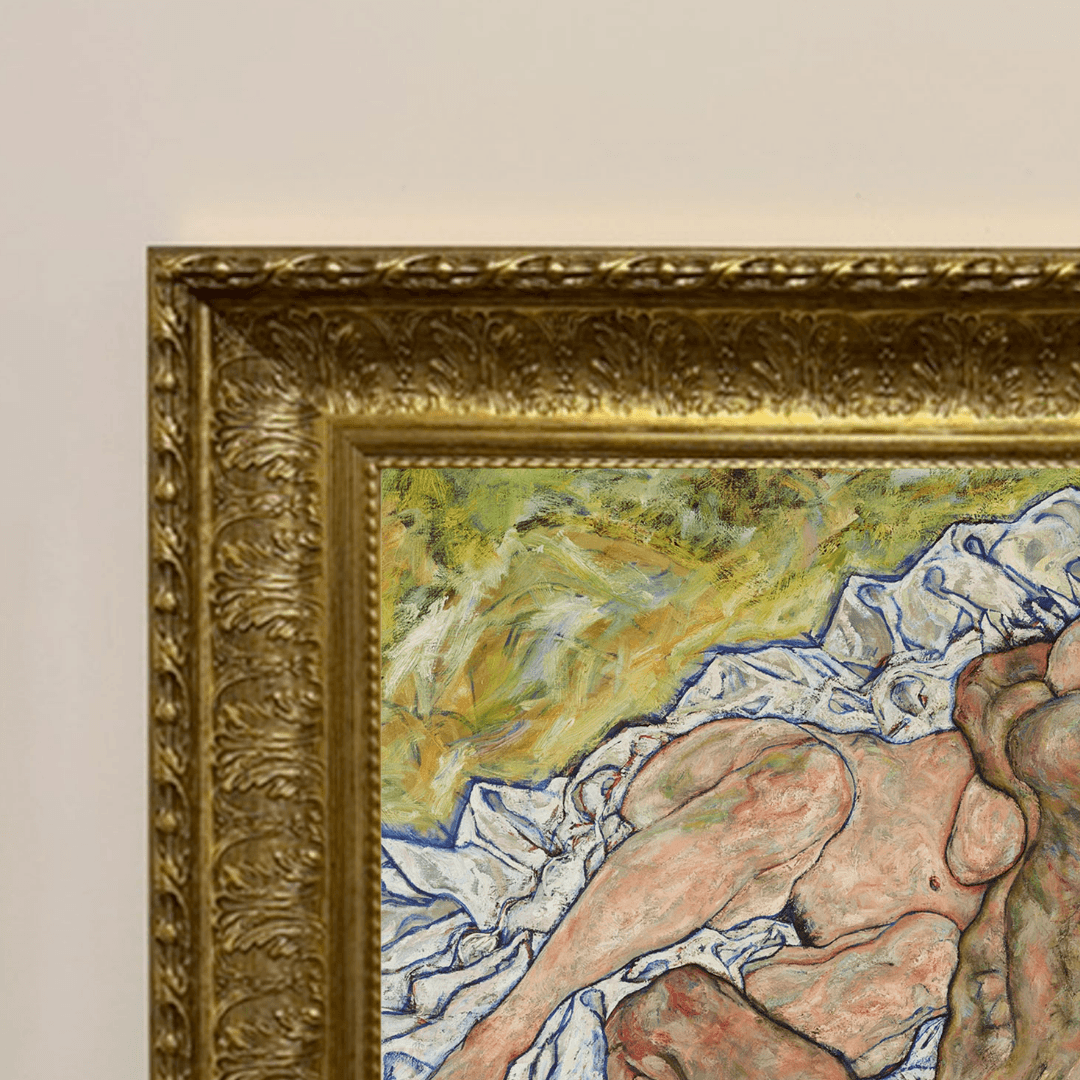 กรอบรูปลายหลุยส์เก่า งานภาพพิมพ์ สไตล์ สีน้ำมันบนผ้าใบ ภาพ Die Umarmung (1917) Egon Schiele (Austrian, 1890-1918)