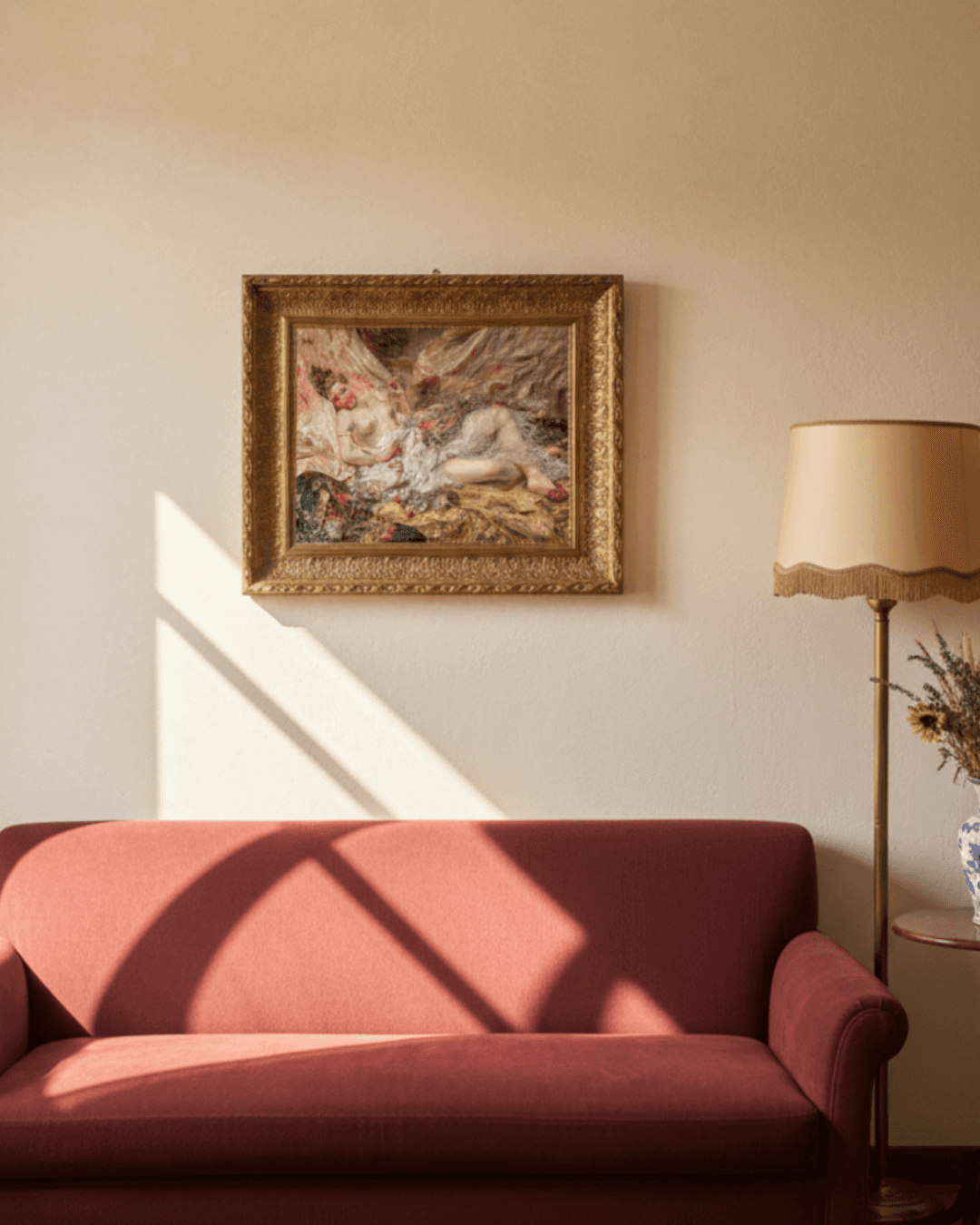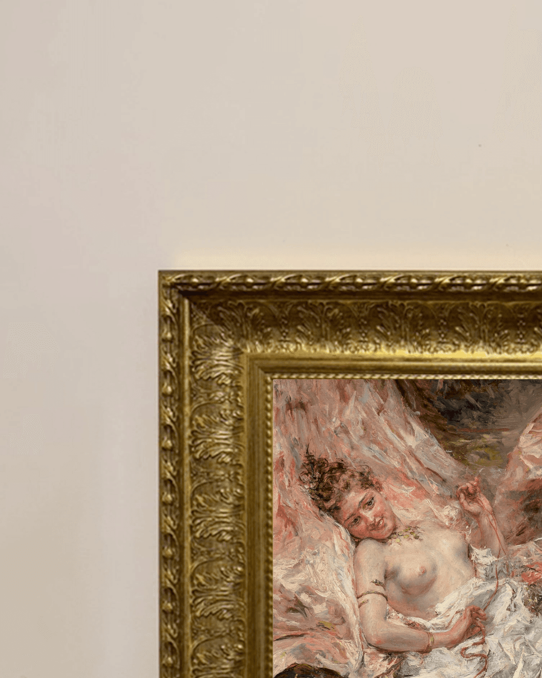 กรอบรูปลายหลุยส์เก่า งานภาพพิมพ์ สไตล์ สีน้ำมันบนผ้าใบ ภาพ Two voluptuaries (circa 1890) Eduardo Leon Garrido (Spanish, 1856-1906)