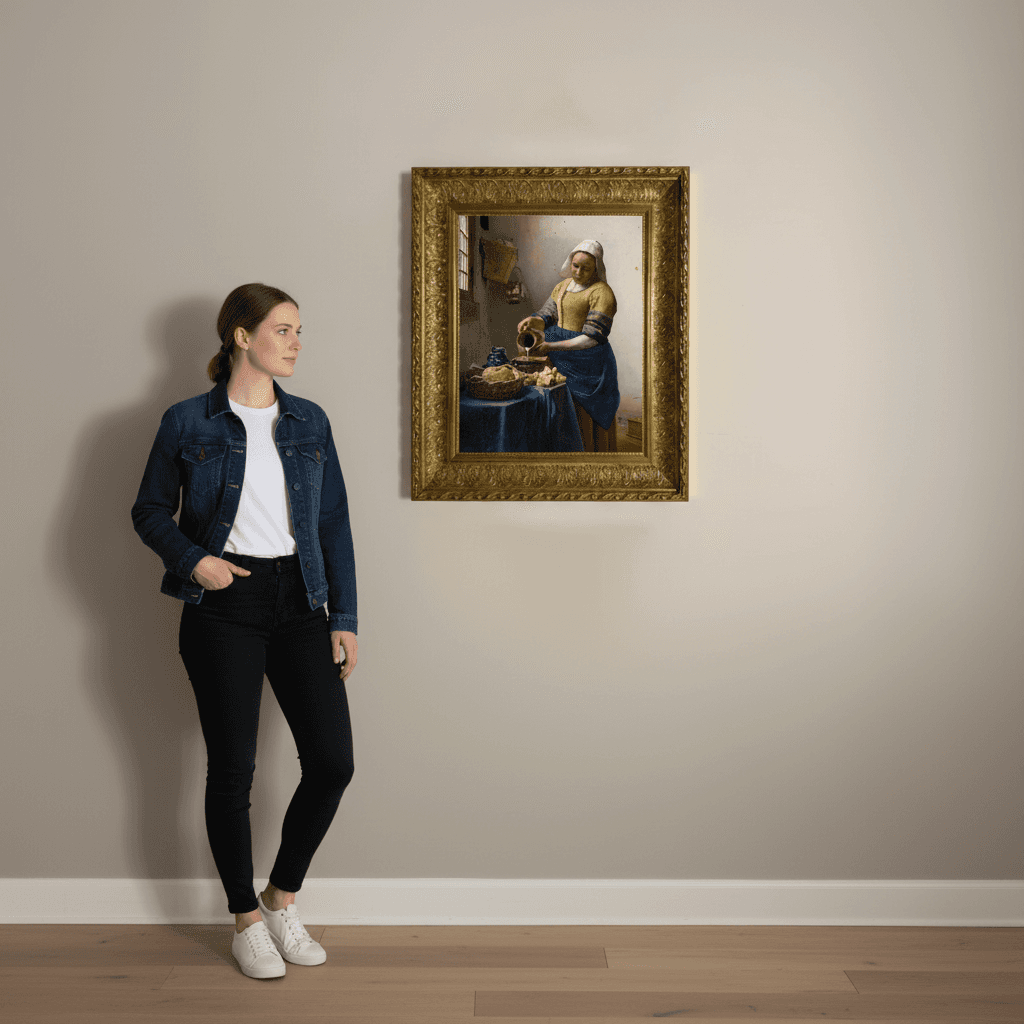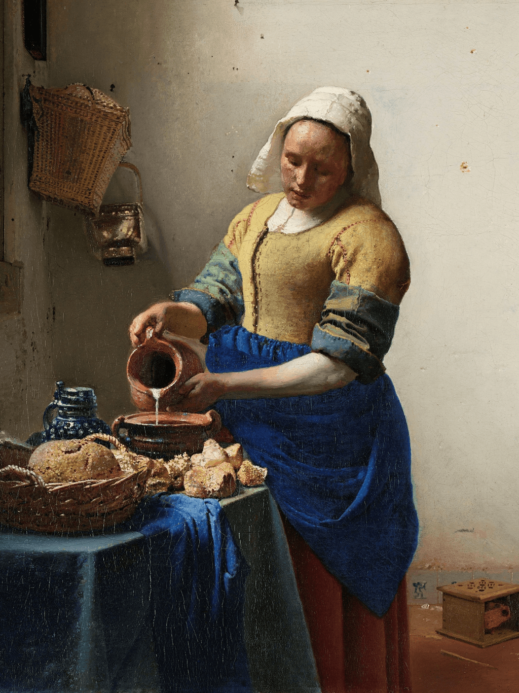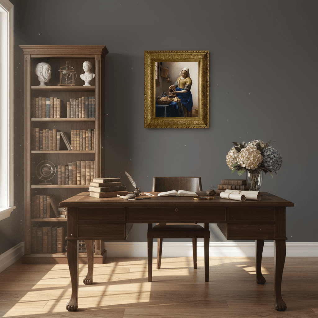 กรอบรูปลายหลุยส์เก่า งานภาพพิมพ์ สไตล์ สีน้ำมันบนผ้าใบ ภาพ The Milkmaid (c. 1660) Johannes Vermeer (Dutch, 1632 - 1675)