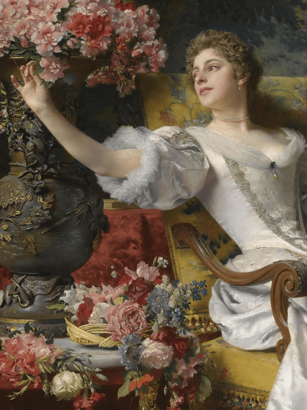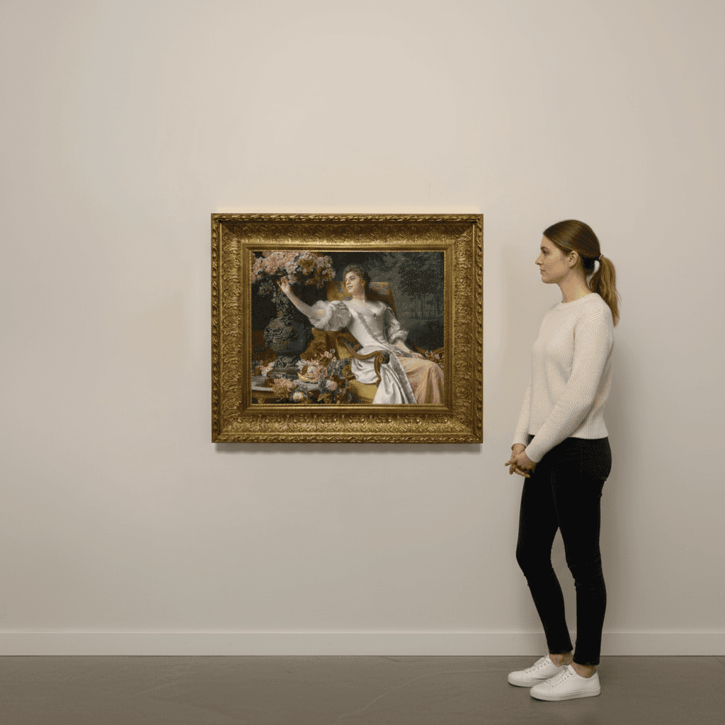 กรอบรูปลายหลุยส์เก่า งานภาพพิมพ์ สไตล์ สีน้ำมันบนผ้าใบ ภาพ The Blossom Of Youth (1898) Władysław Czachórski (Polish, 1850 – 1911)
