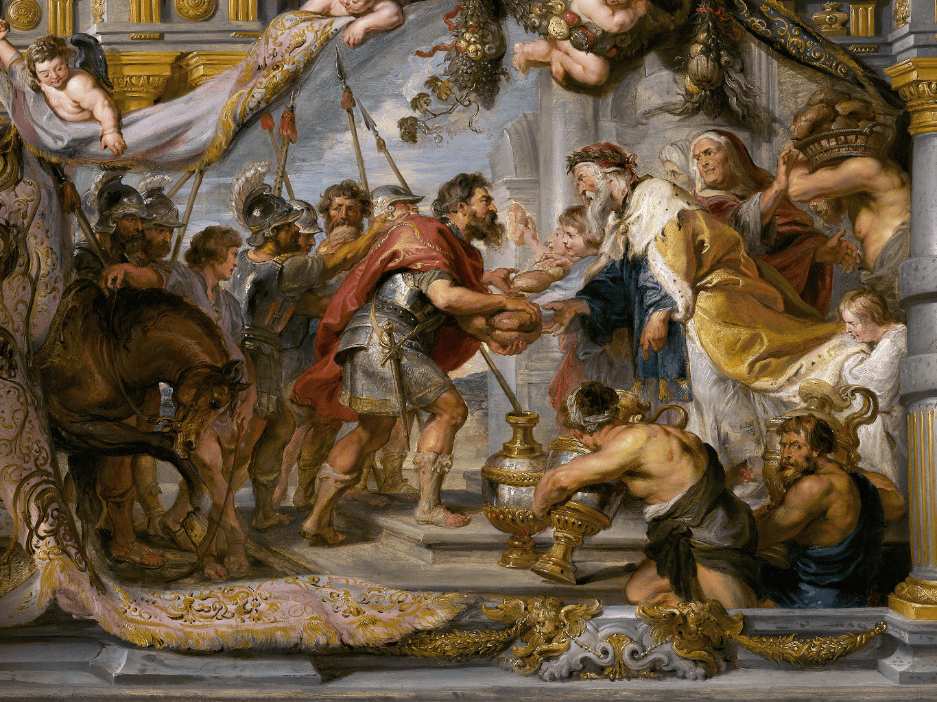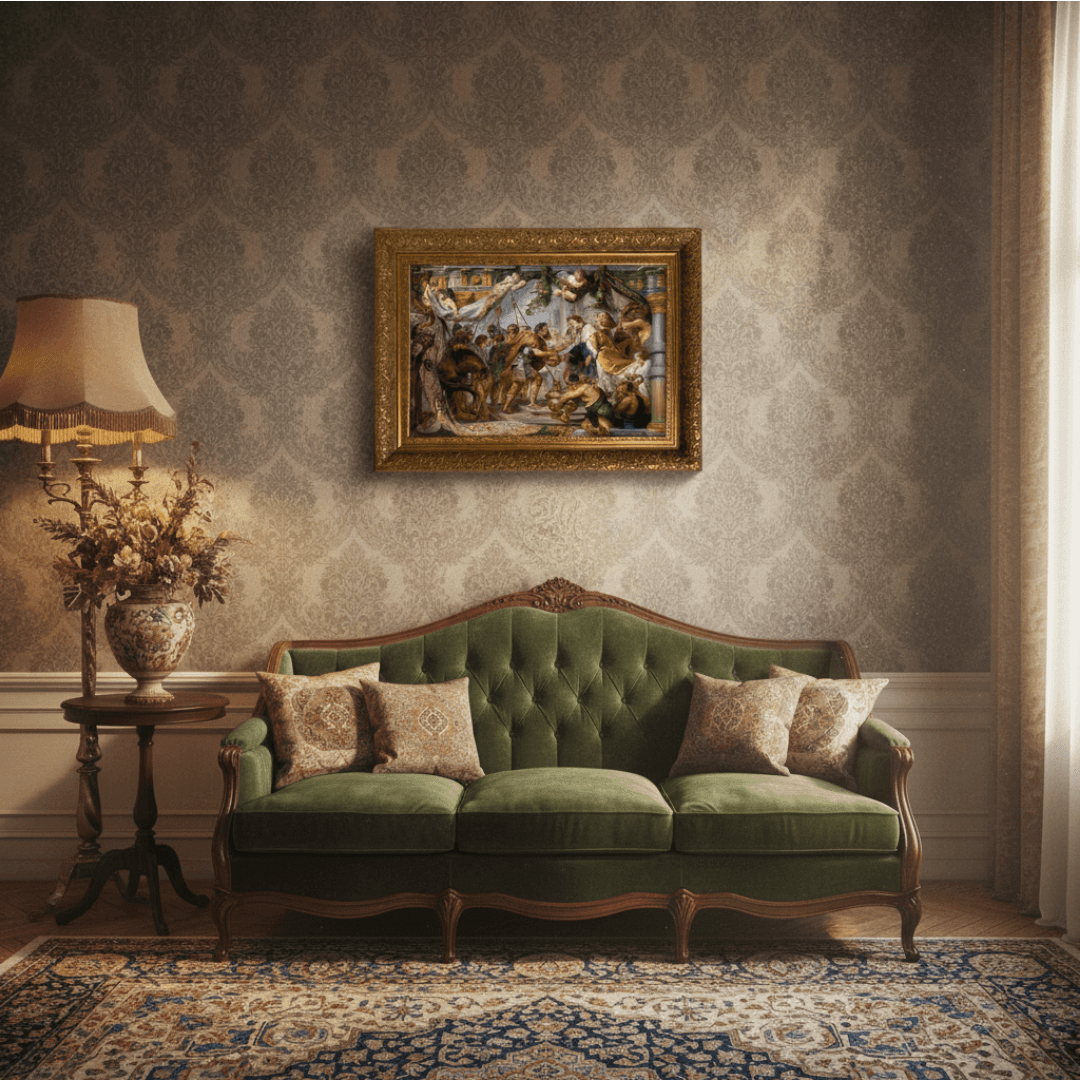 กรอบรูปหลุยส์ ลายเก่า งานภาพพิมพ์ความละเอียดสูงสไตล์ สีน้ำมันบนผ้าใบ ภาพ The Meeting of Abraham and Melchizedek (c. 1626) Peter Paul Rubens (Flemish, 1577-1640)
