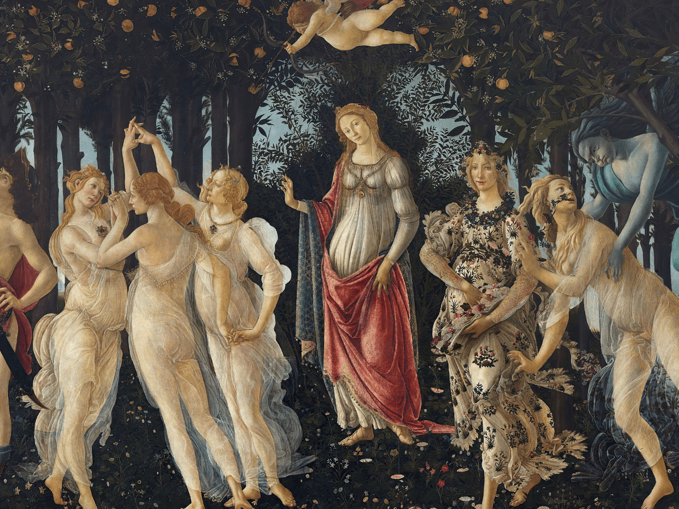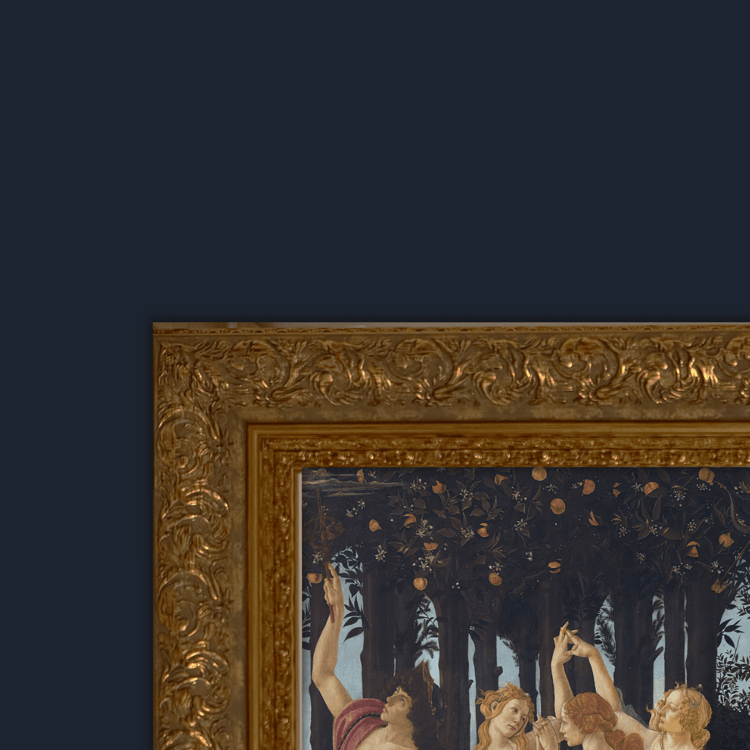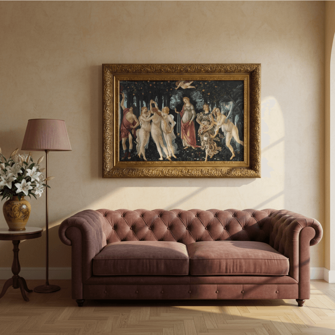 กรอบรูปหลุยส์ ลายเก่า งานภาพพิมพ์ความละเอียดสูงสไตล์ สีน้ำมันบนผ้าใบ ภาพ Spring (C. 1480) Sandro Botticelli (Italian, 1444-1510)