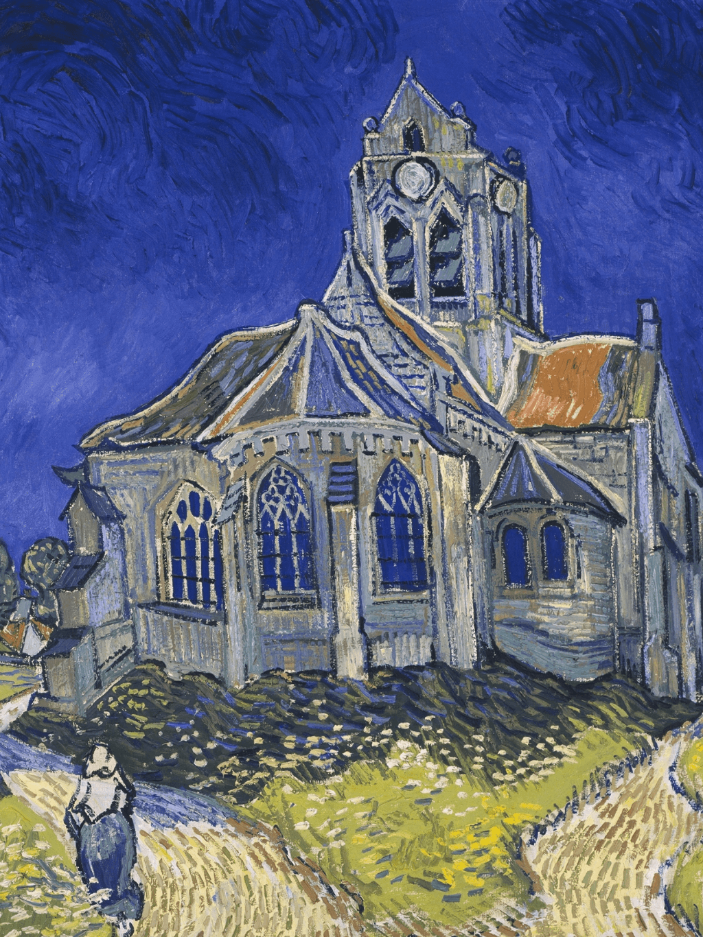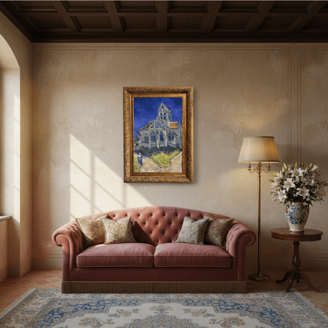 กรอบรูปหลุยส์ ลายเก่า งานภาพพิมพ์ความละเอียดสูงสไตล์ สีน้ำมันบนผ้าใบ ภาพ The Church in Auvers-sur-Oise, View from the Chevet (1890) Vincent van Gogh (Dutch, 1853-1890)