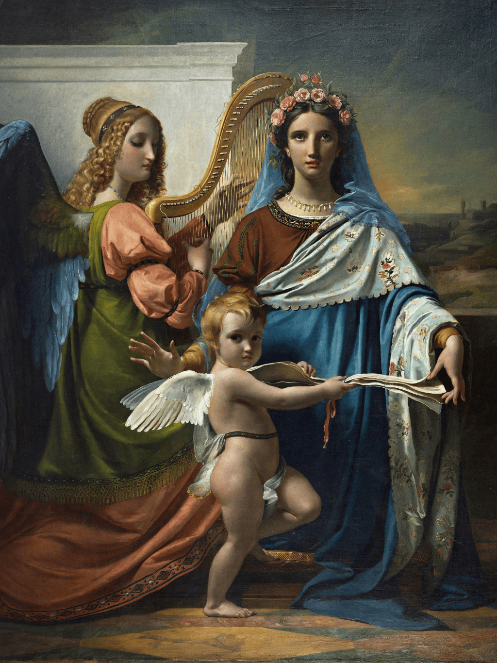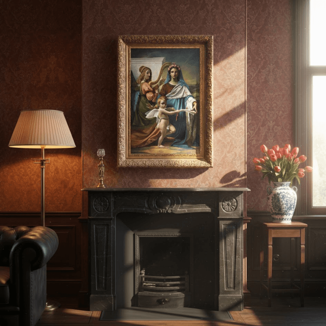 กรอบรูปลายหลุยส์ขอบหนา งานภาพพิมพ์ สไตล์ สีน้ำมันบนผ้าใบ ภาพ Saint Cecilia Of Rome (1824) François-Joseph Navez (Belgian, 1787 - 1869)