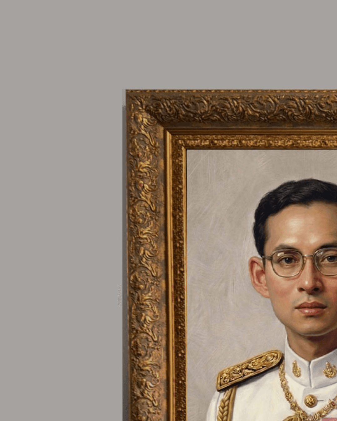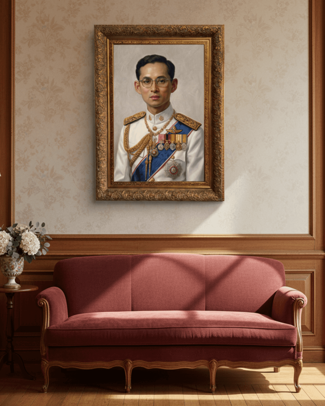 กรอบรูปหลุยส์ ขนาดใหญ่ ลายเก่า งานภาพพิมพ์ความละเอียดสูงสไตล์ สีน้ำมันบนผ้าใบ ภาพ รัชกาลที่ 9