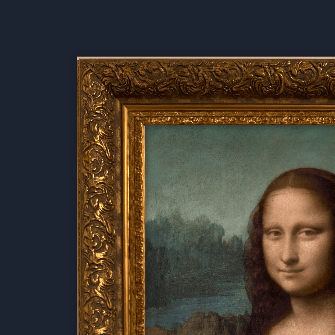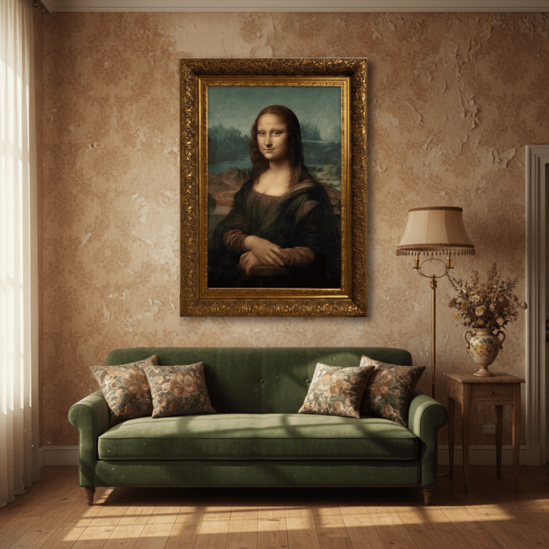 กรอบรูปหลุยส์ ลายเก่า งานภาพพิมพ์ความละเอียดสูงสไตล์ สีน้ำมันบนผ้าใบ ภาพ Mona Lisa, by Leonardo da Vinci