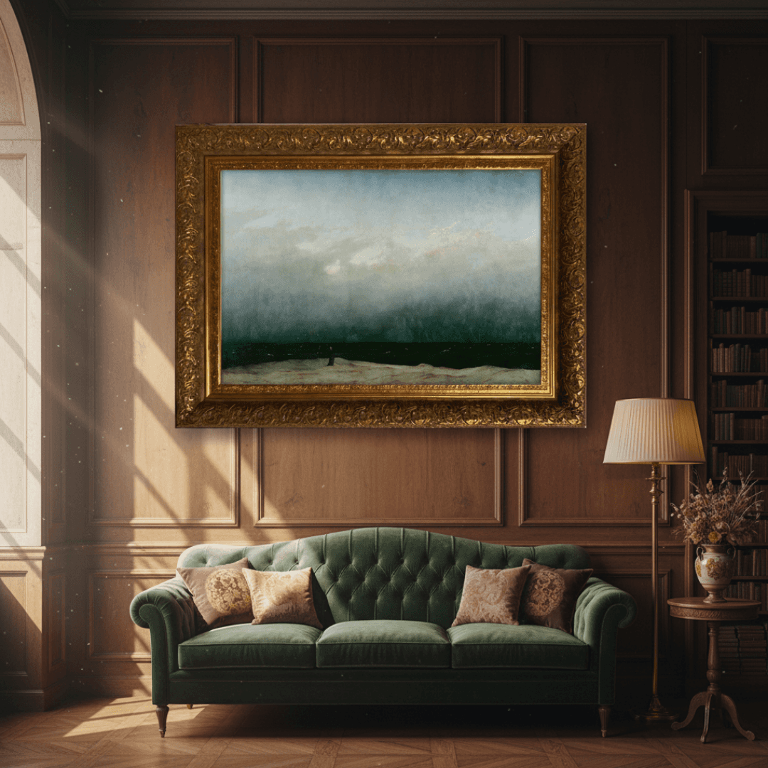 กรอบรูปหลุยส์ ลายเก่า งานภาพพิมพ์ความละเอียดสูงสไตล์ สีน้ำมันบนผ้าใบ ภาพ The Monk by the Sea (between 1808 and 1810) Caspar David Friedrich (German, 1774-1840)