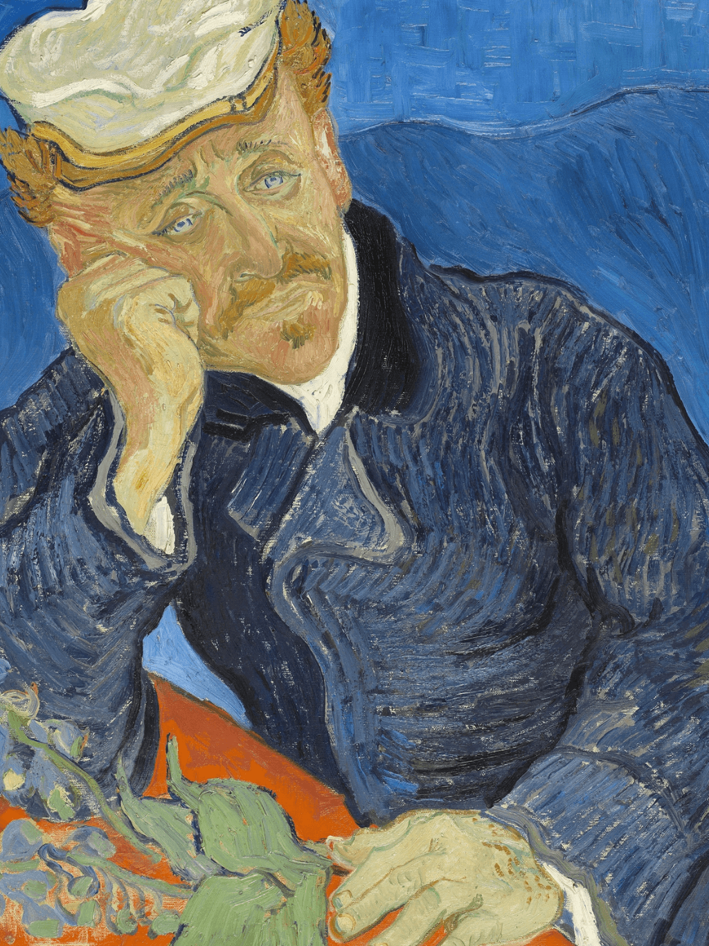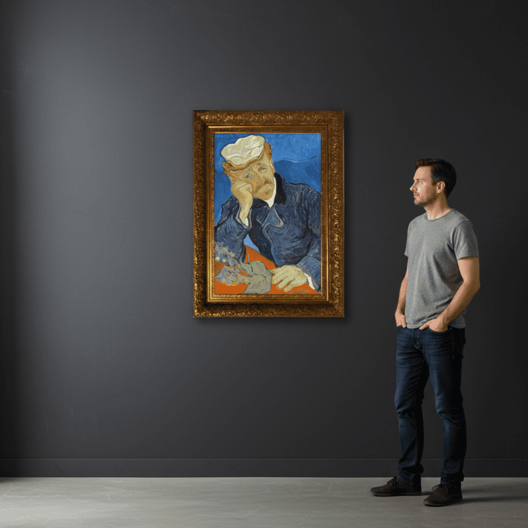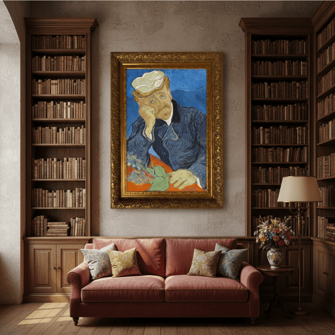 กรอบรูปหลุยส์ ลายเก่า งานภาพพิมพ์ความละเอียดสูงสไตล์ สีน้ำมันบนผ้าใบ ภาพ ที่ถูกประมูลไปแพงที่สุดของ แวนโก๊ะ Dr Paul Gachet (1890) Vincent van Gogh (Dutch, 1853-1890)