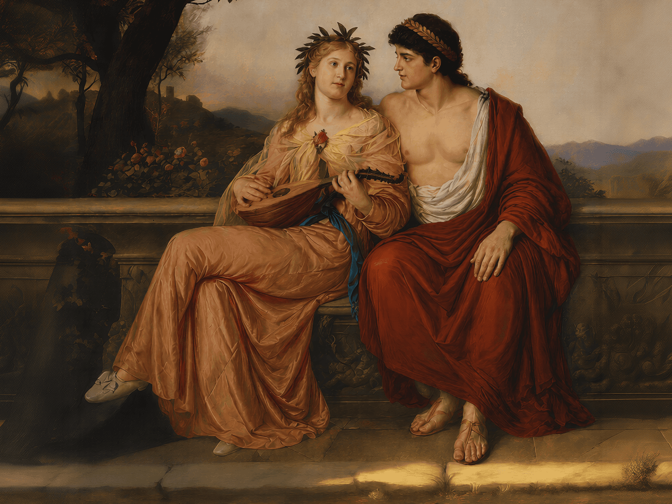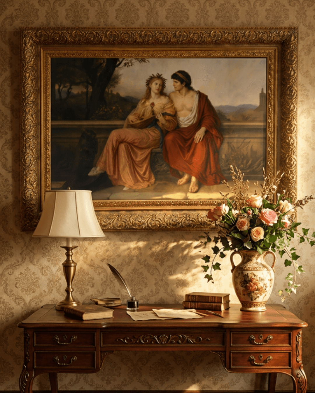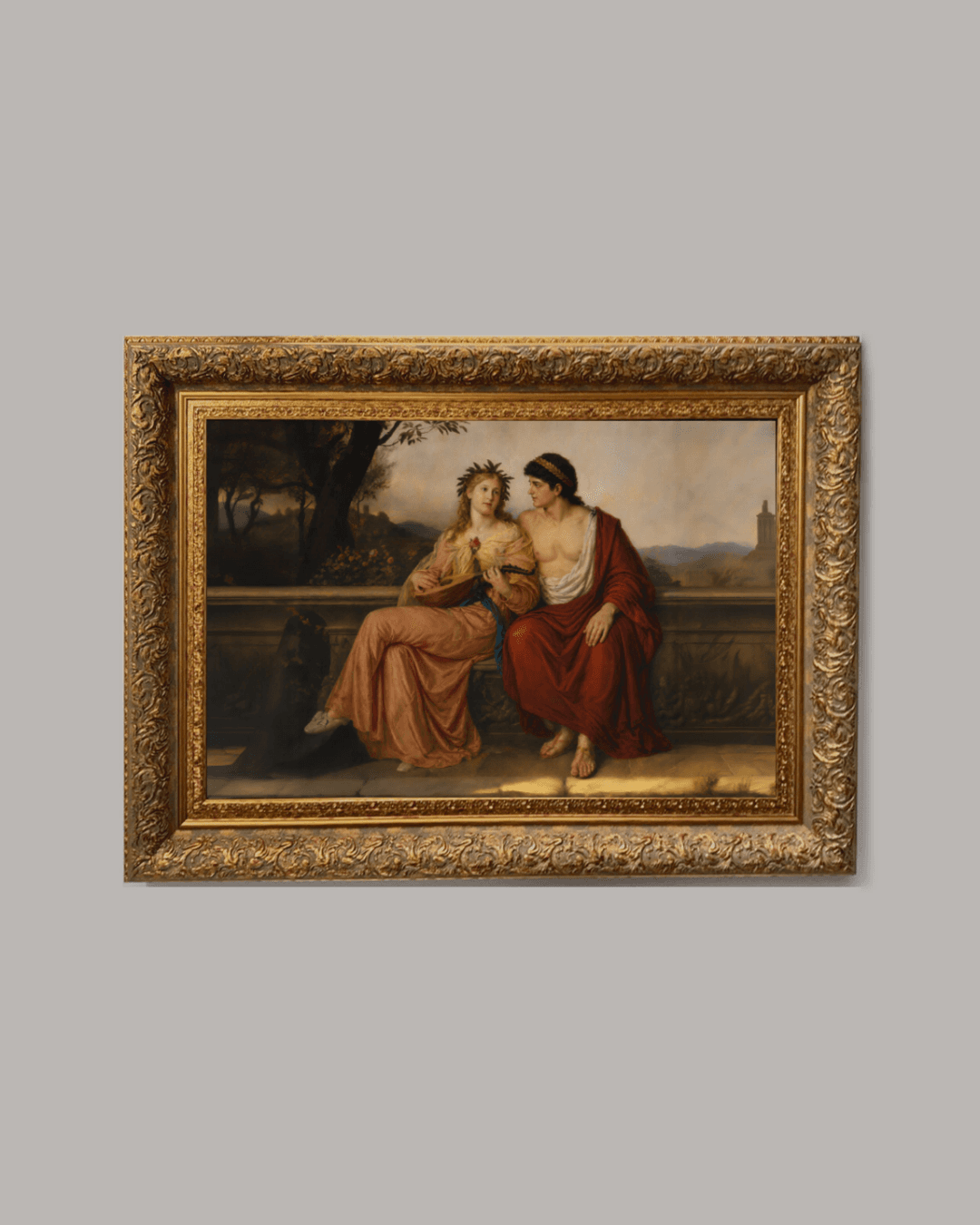 กรอบรูปหลุยส์ ลายเก่า งานภาพพิมพ์ความละเอียดสูงสไตล์ สีน้ำมันบนผ้าใบ ภาพ inspried by Ludwig Mayer - Allegorie auf Musik und Malerei