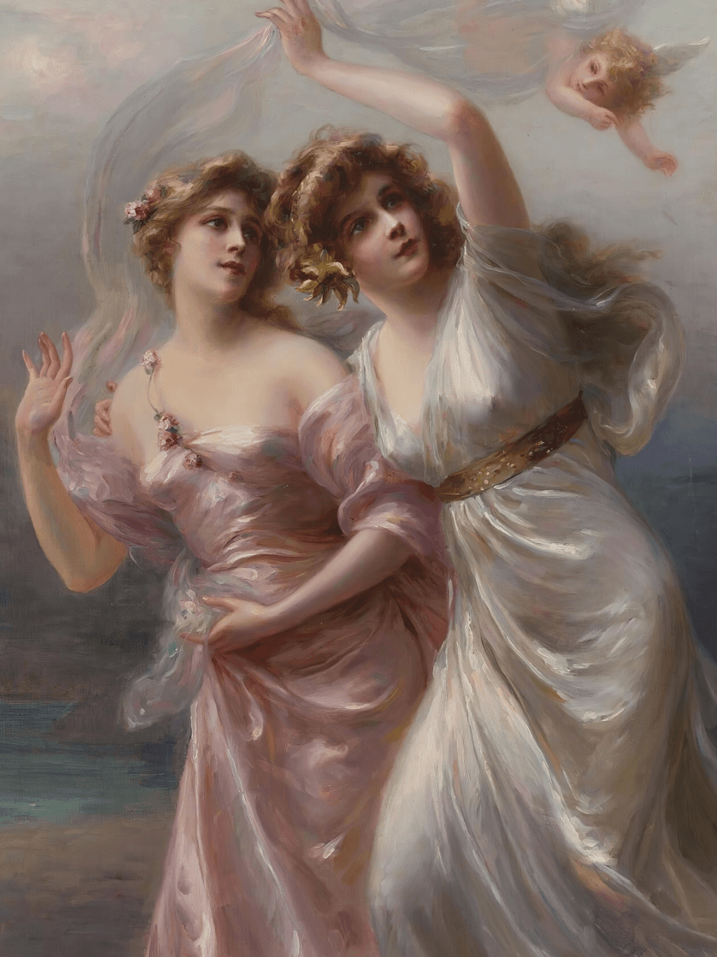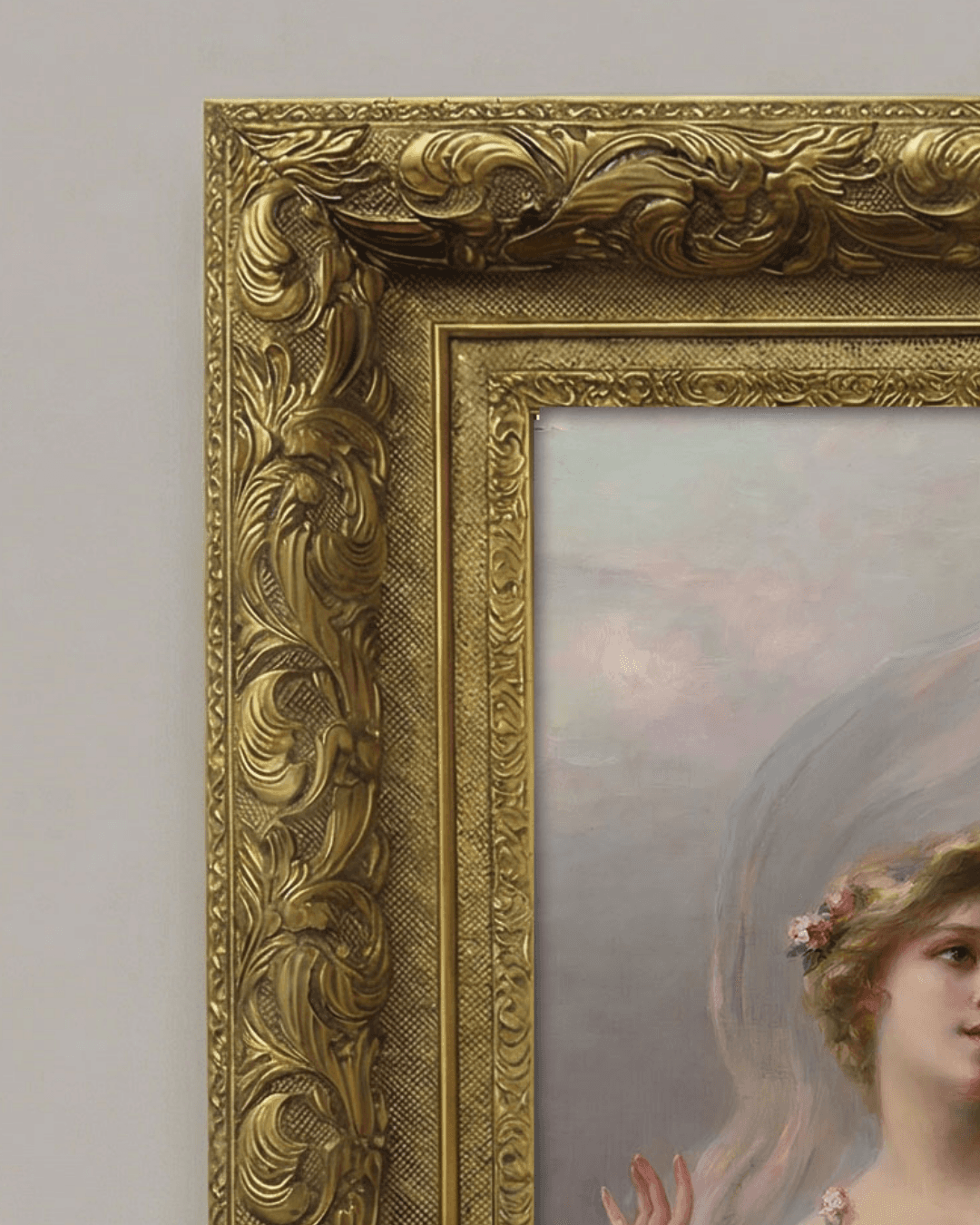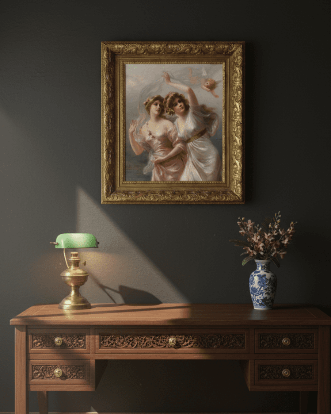 กรอบรูปลายหลุยส์เก่า งาน Embellished paint สไตล์ สีน้ำมันบนผ้าใบ ภาพ Love’s messengers Édouard Bisson (French, 1856-1939)