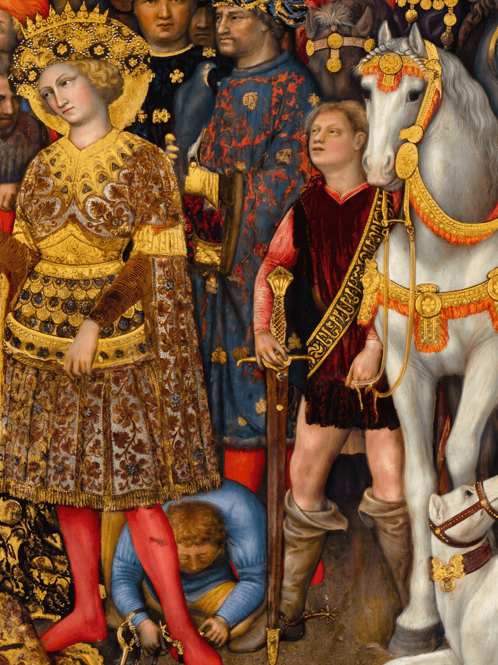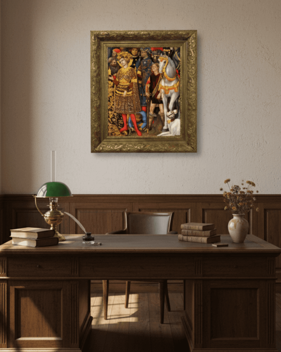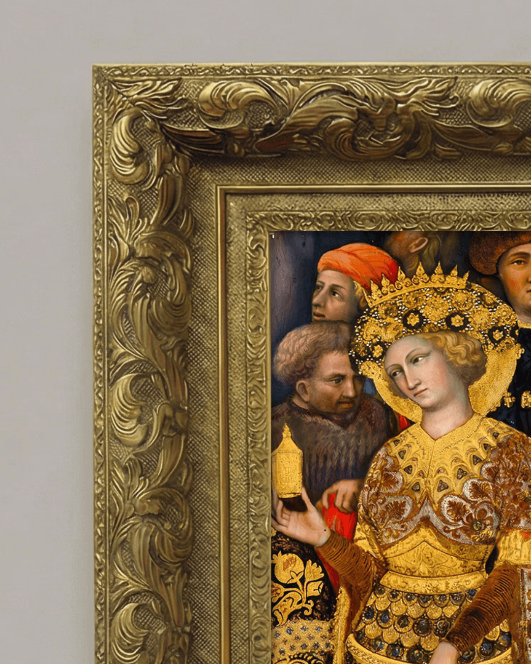 กรอบรูปลายหลุยส์เก่า งาน Embellished paint สไตล์ สีน้ำมันบนผ้าใบ ภาพ 1954 Vintage Print Gothic Art Gentile Da Fabriano Adoration of the Magi 1423