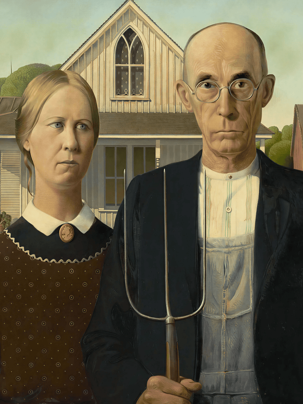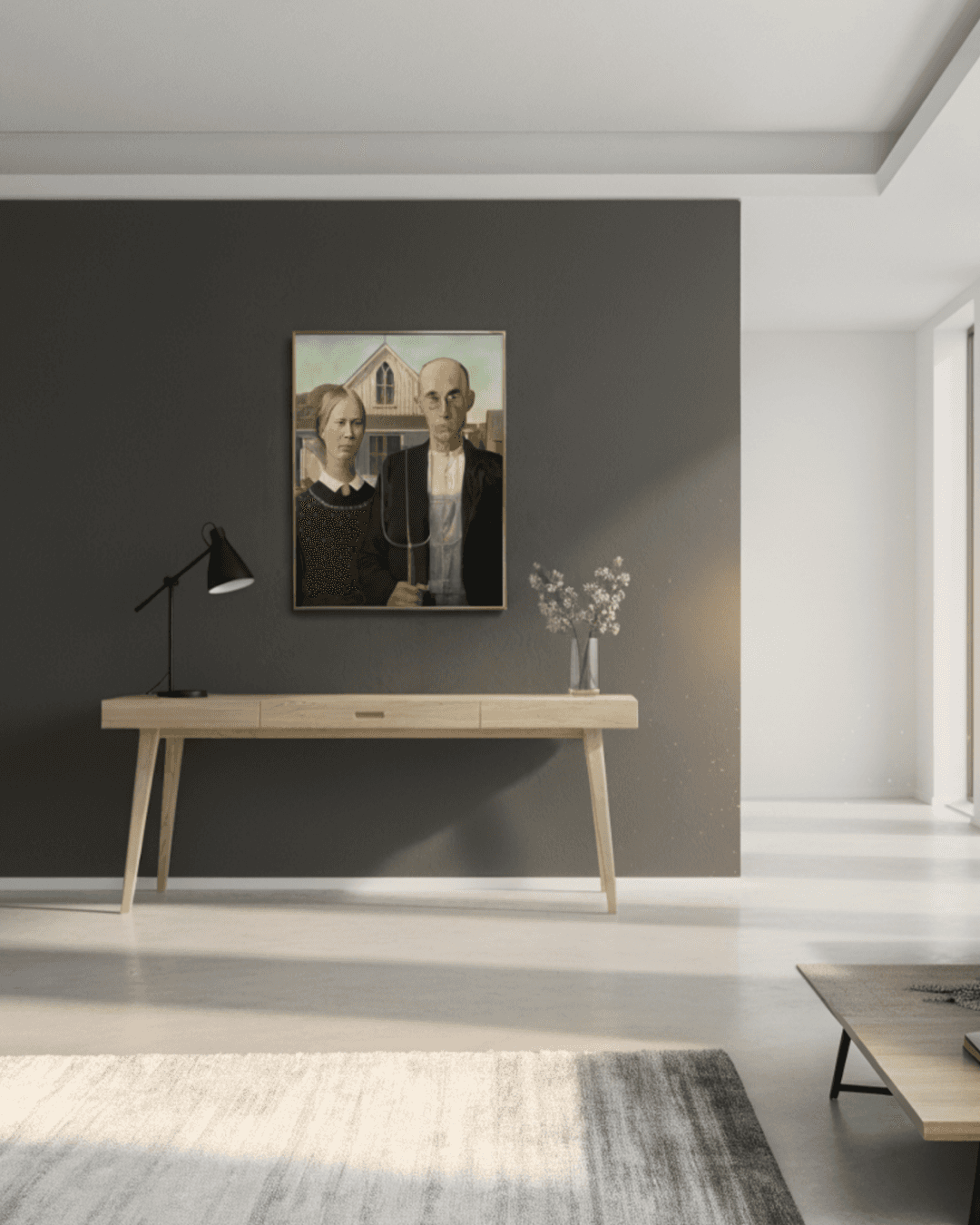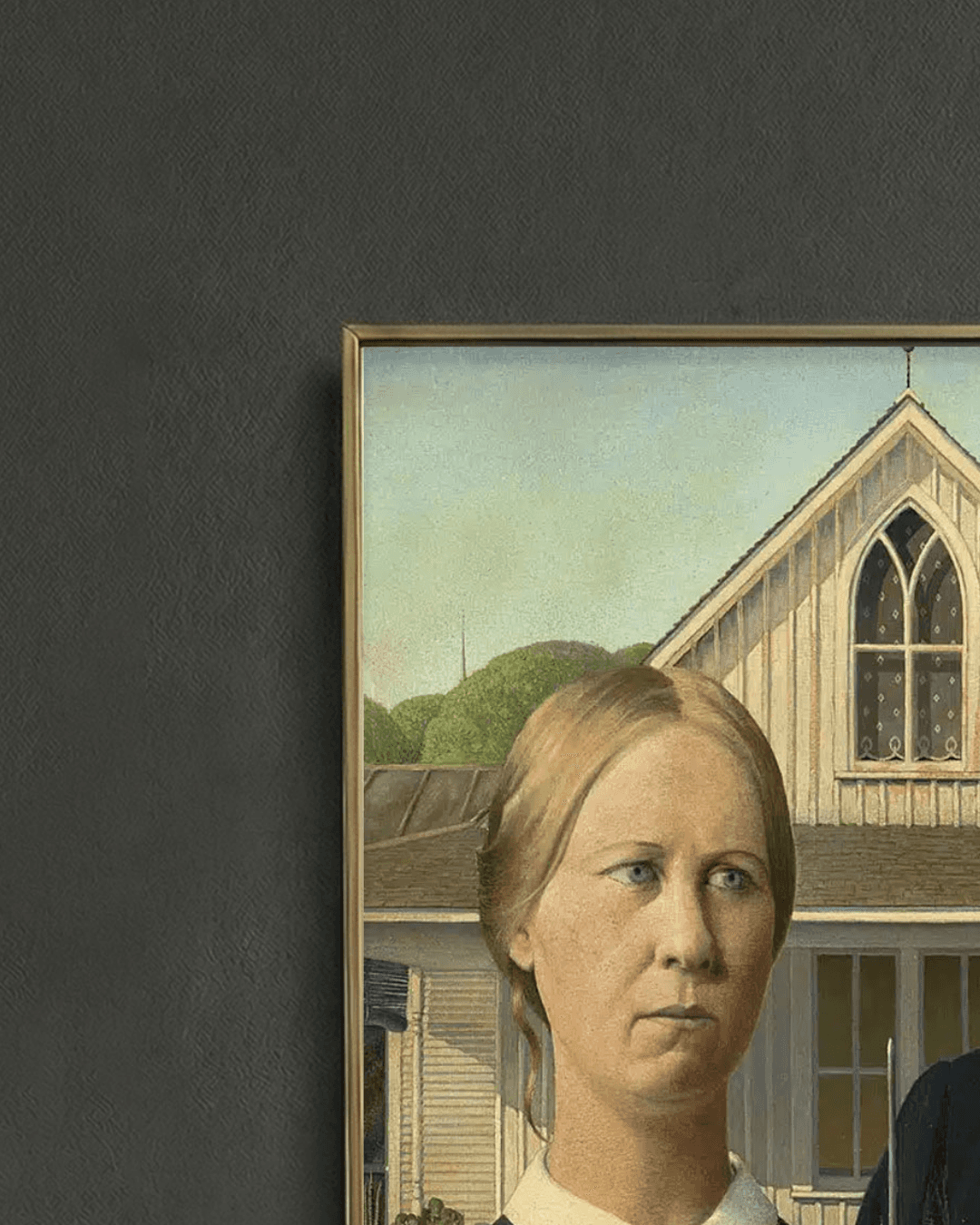 กรอบรูปอลูมิเนียมสีทอง ภาพพิมพ์ American-Gothic-(Grant-Wood,-1930)