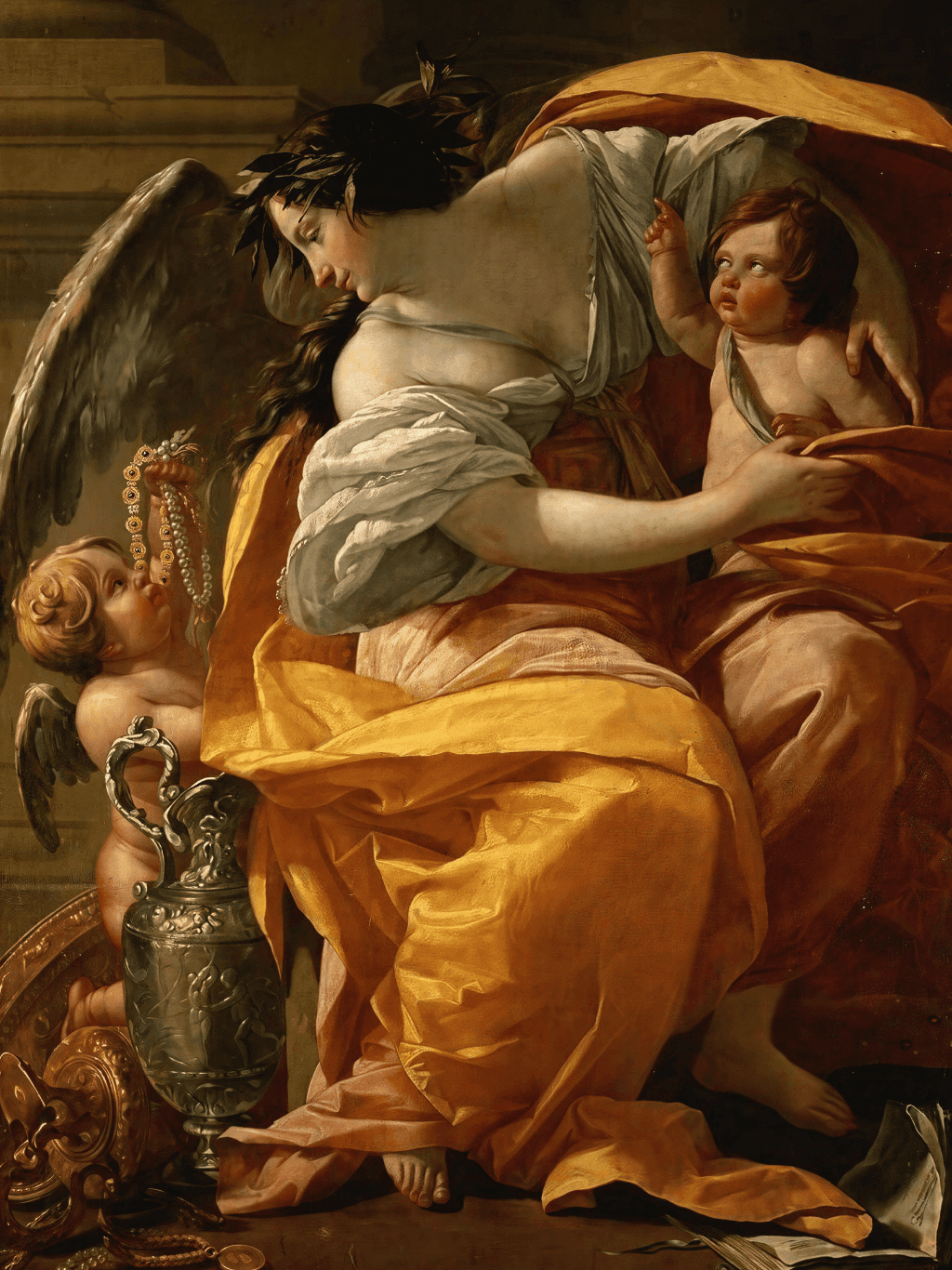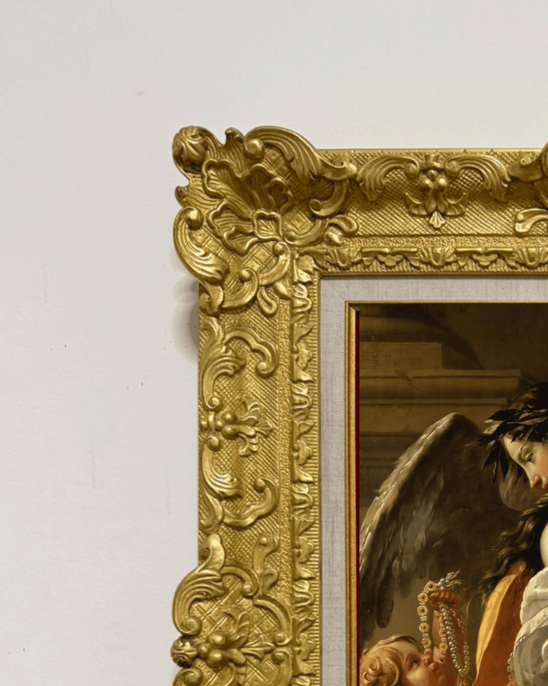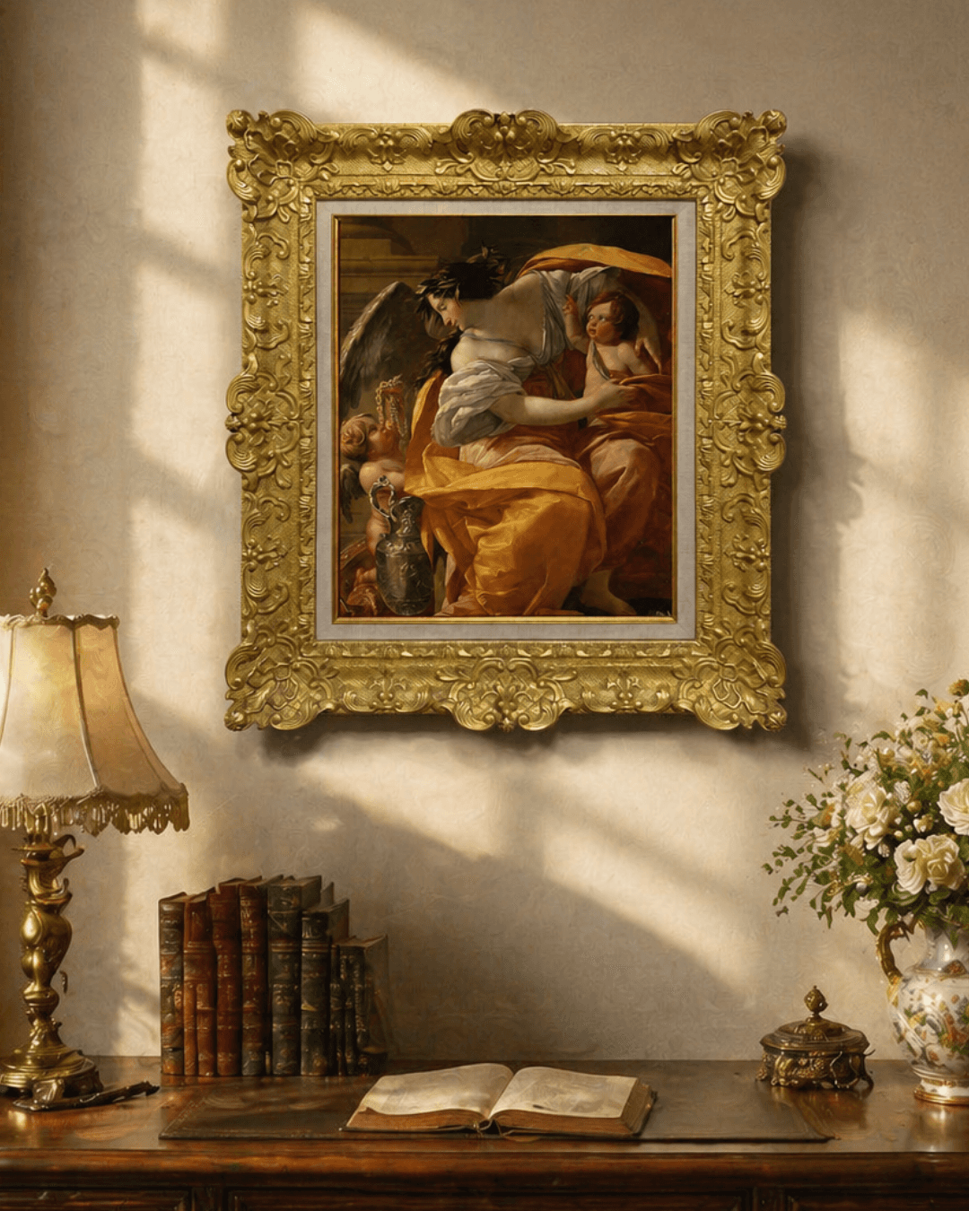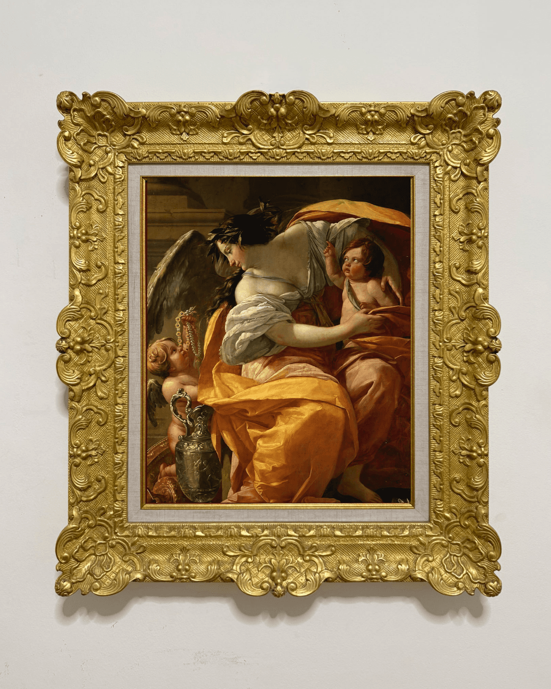 กรอบรูปหลุยส์ไม้แท้ งานเก่ายุโรป ขนาดใหญ่ งานภาพพิมพ์ สไตล์ สีน้ำมันบนผ้าใบ ภาพ Allegory of Wealth Simon Vouet (1590–1649)