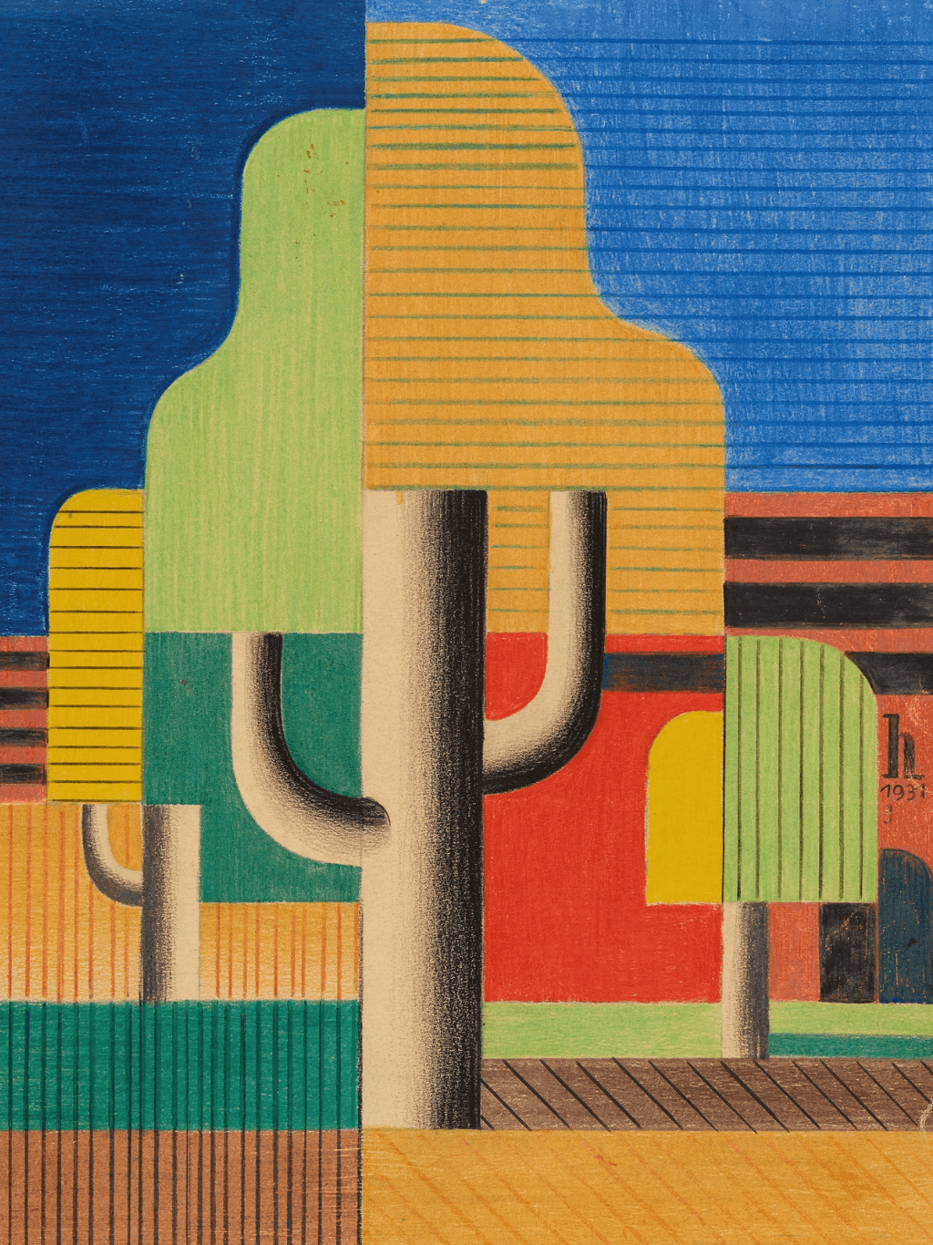 กรอบรูปลายเก่าสีทอง งานภาพพิมพ์ สไตล์ สีน้ำมันบนผ้าใบ ภาพ Bäume (1931) Heinrich Hoerle (German, 1895 –1936)