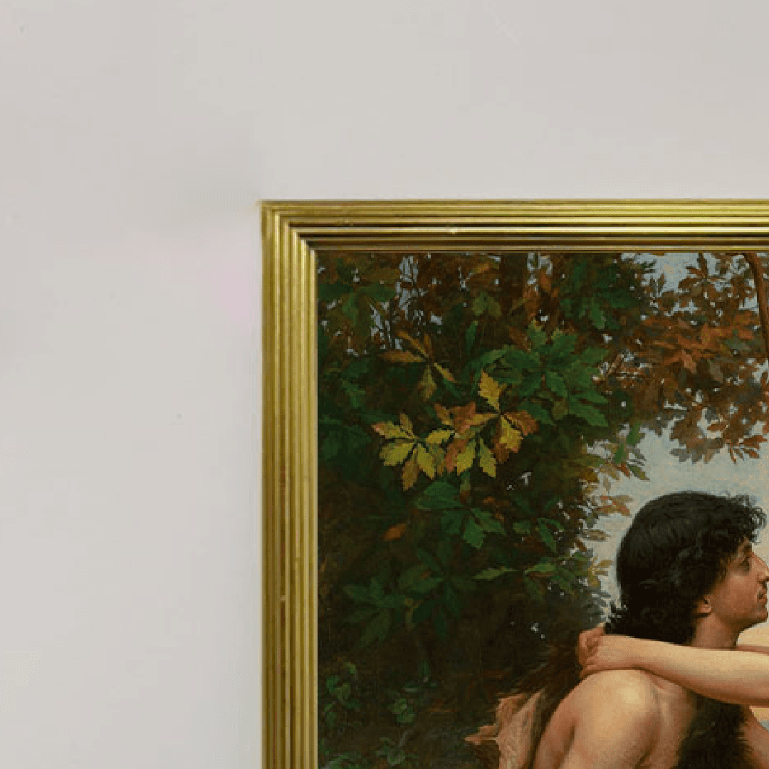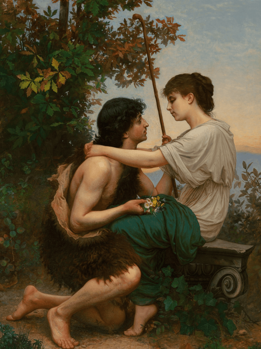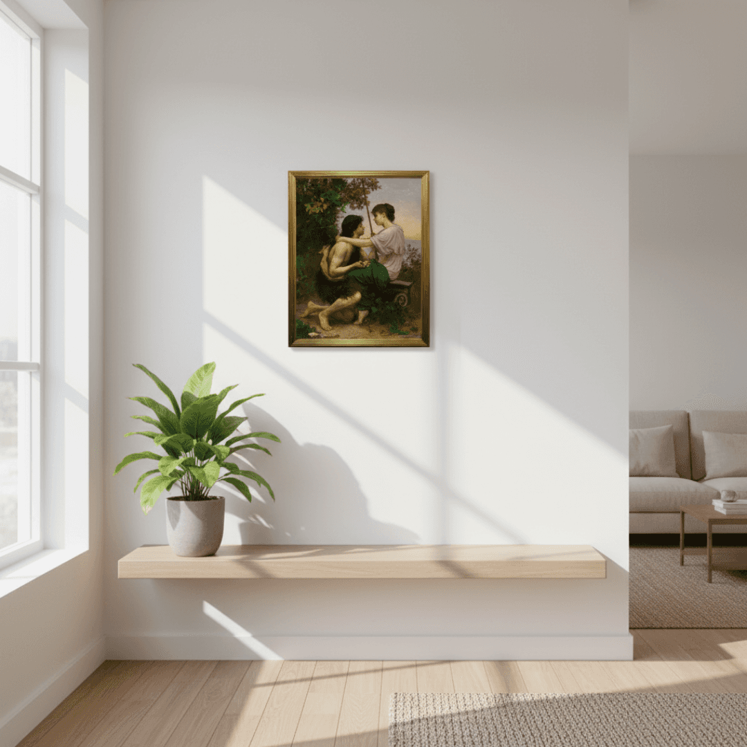 กรอบรูปโลหะสีทอง ภาพพิมพ์ สไตล์สีน้ำมัน บนผ้าใบ ภาพ Daphnis and Chloe (1893) Camille Félix Bellanger (French, 1853 - 1923)